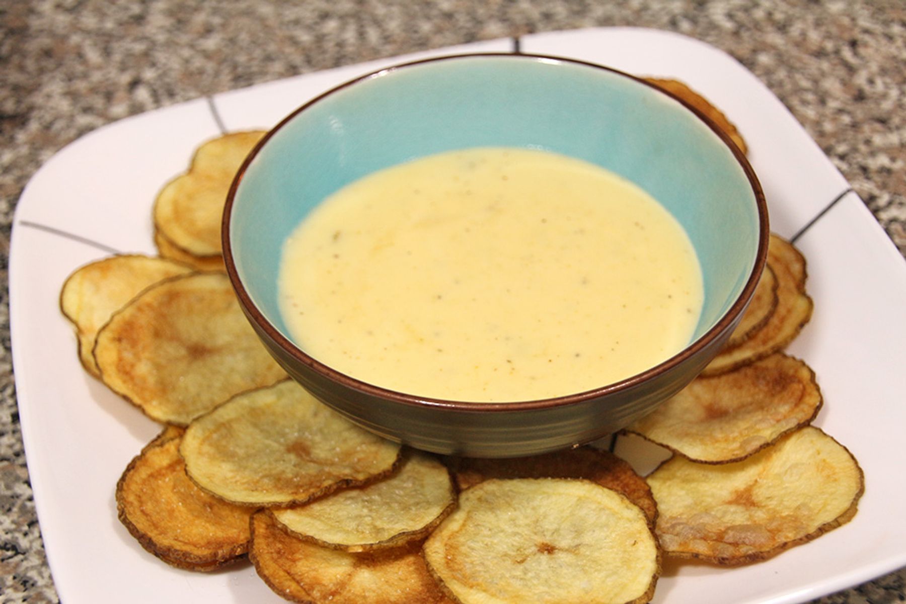 These crispy potato chips are actually made in the microwave, but they have the texture of delicious kettle cooked chips. Pair them with this spicy cheese dip, and you'll have a snack that no one can say no to!