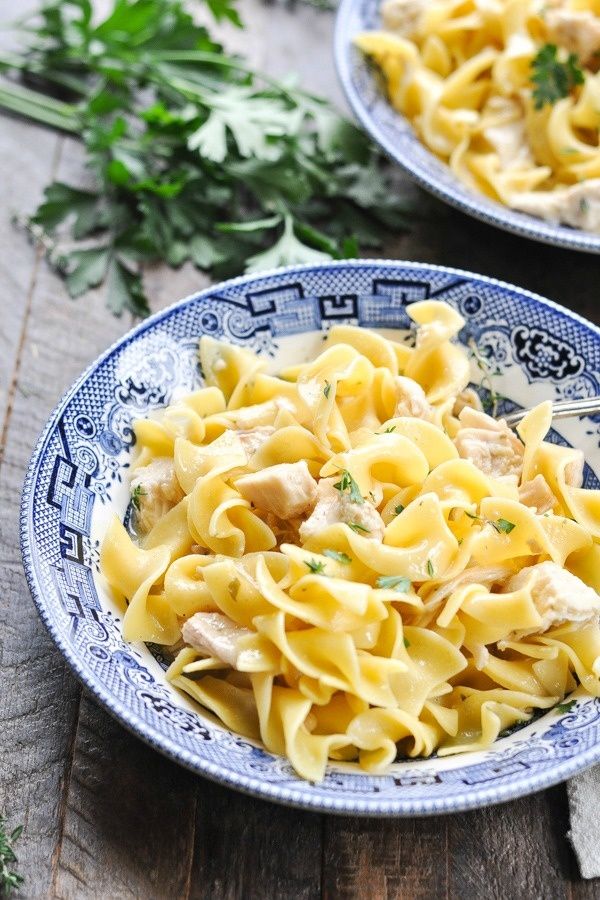 Crock Pot Chicken and Noodles is an easy dinner recipe with just 5 minutes of prep! The creamy broth coats the pasta and tender meat for a cozy, family-friendly meal that's perfect on a chilly night!