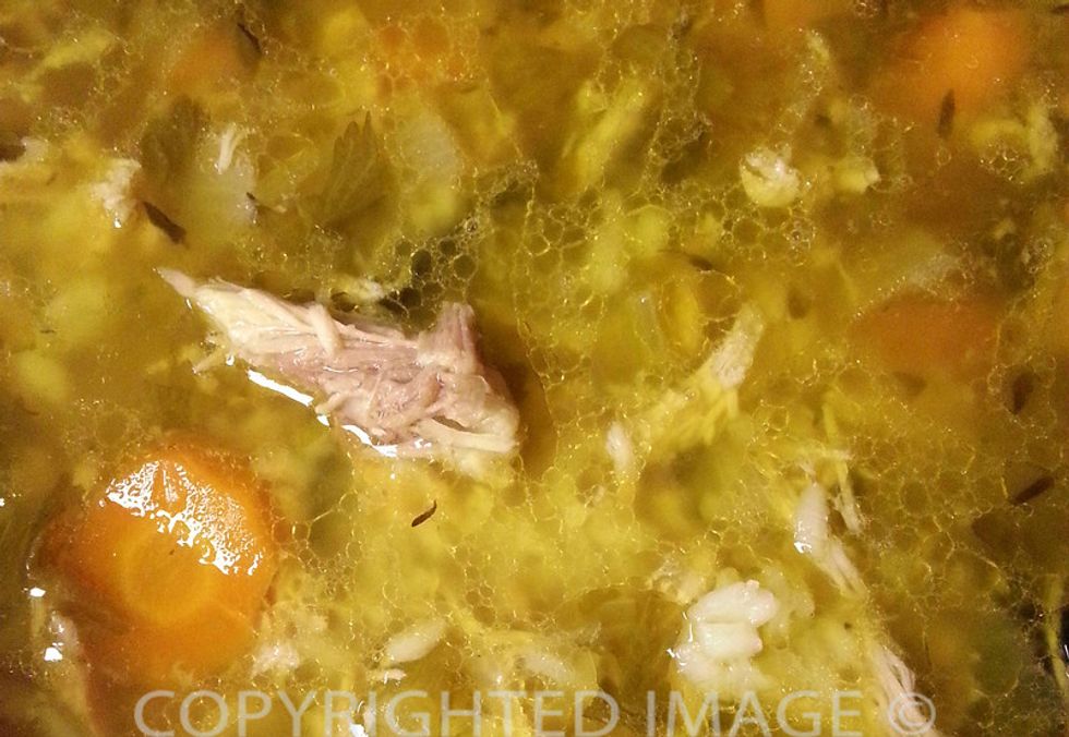 This soup is made with a whole fresh frying chicken and fresh herbs to produce a deep rich stock . A little more time consuming but It makes a world of flavor difference.