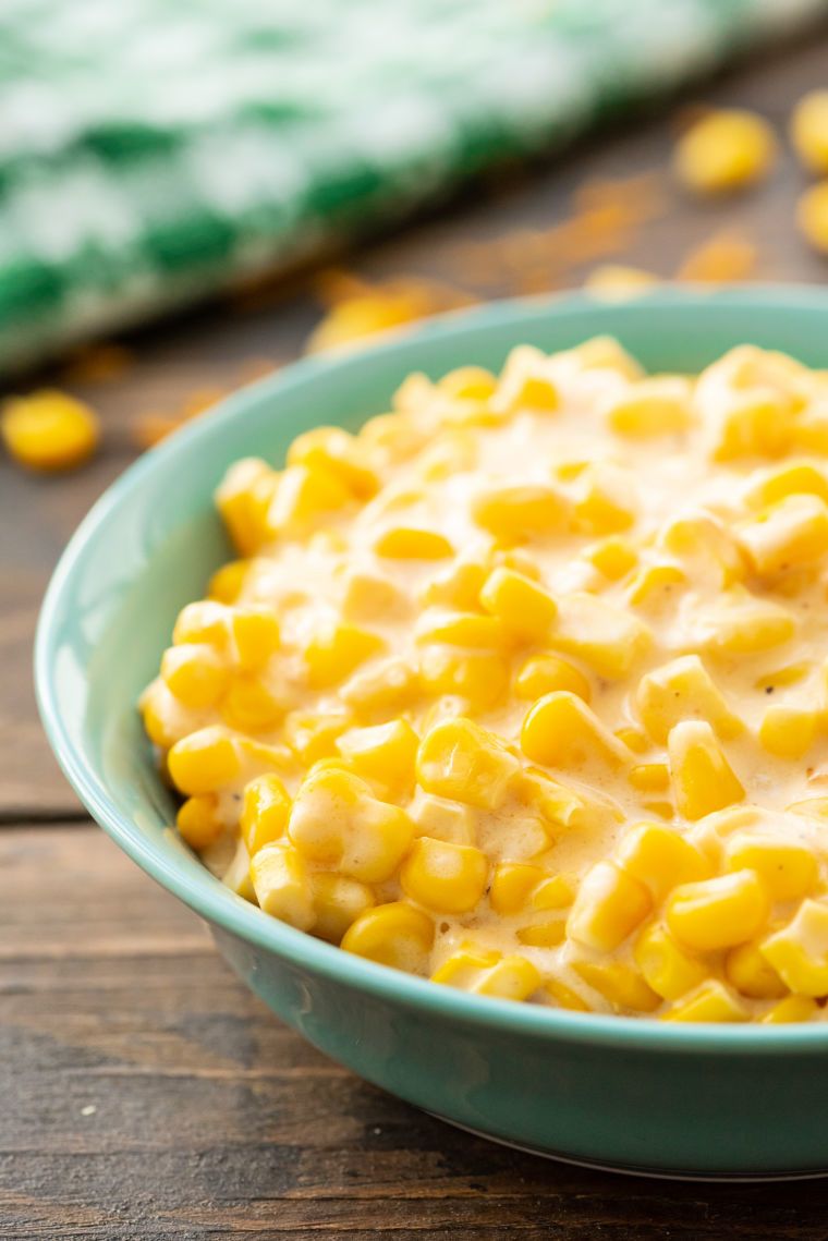 If you are hosting the holidays and running out of kitchen space this delicious Crock Pot Creamed Corn is the perfect solution! This creamy side dish is super easy and I love that it's cooked in my slow cooker and doesn't take up any oven space. Plus, it has a secret ingredient. Cheese! Everything is always better with cheese. I'm always asked to bring this easy, classic creamed corn to the holidays.