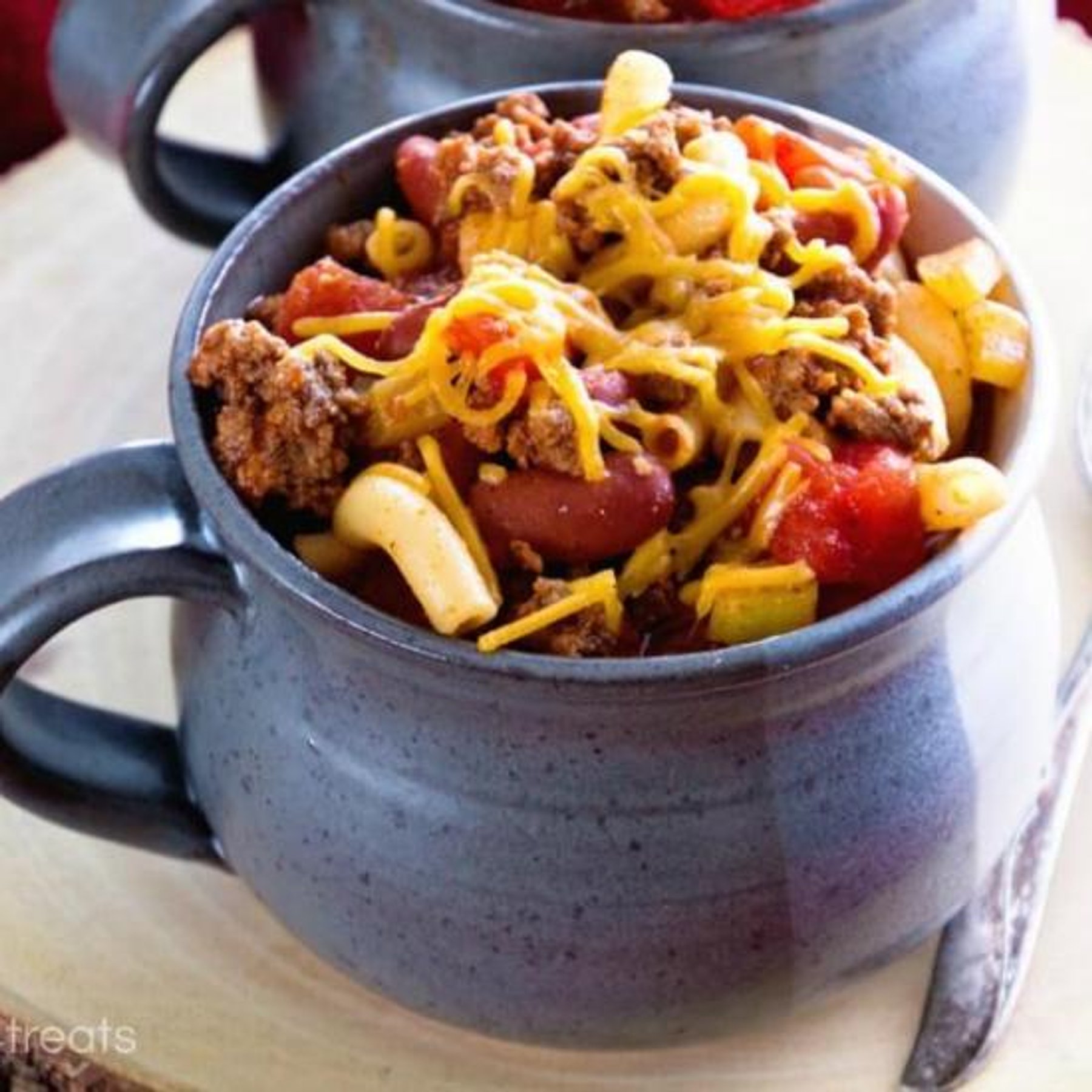 Crock Pot Hearty Chili Mac Recipe ~ Delicious Chili Slow Cooked All Day Long and Then Finished Off with Pasta! Hearty, Comforting Meal for Dinner!