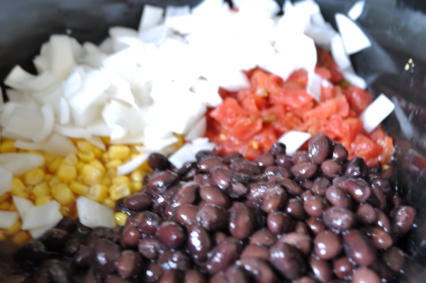 1. Put the Rotel, drained black beans, and drained corn in the crock pot