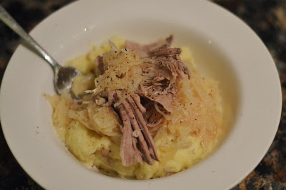 Place the pork loin in the bottom of the Crock Pot, season with salt and pepper to taste. Cover the pork with sauerkraut. Cook on high for about 4 hours. Shred or cut meat and serve over mashed potatoes,...