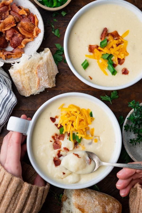 You only need 6 ingredients for this creamy, cheesy, Crockpot Potato Soup! Garnish each bowl with plenty of bacon, chives, green onions, sour cream, or cheddar cheese. The loaded baked potato soup is delicious alongside a crisp green salad, a loaf of crusty bread, or a pan of cornbread!