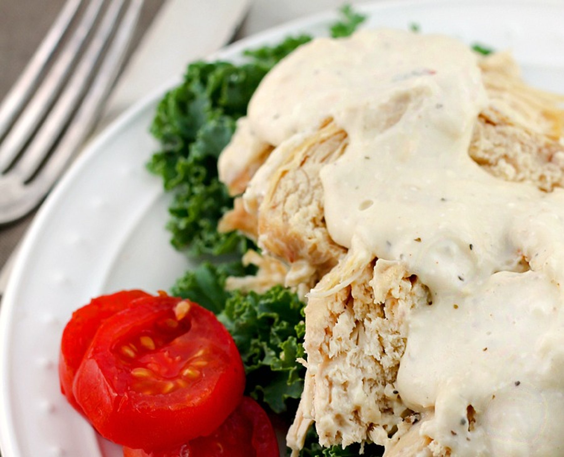 This recipe is so easy yet packed full of flavor. It’s creamy consistency and light Ranch flavor along with the fork tender chicken breasts is irresistible.