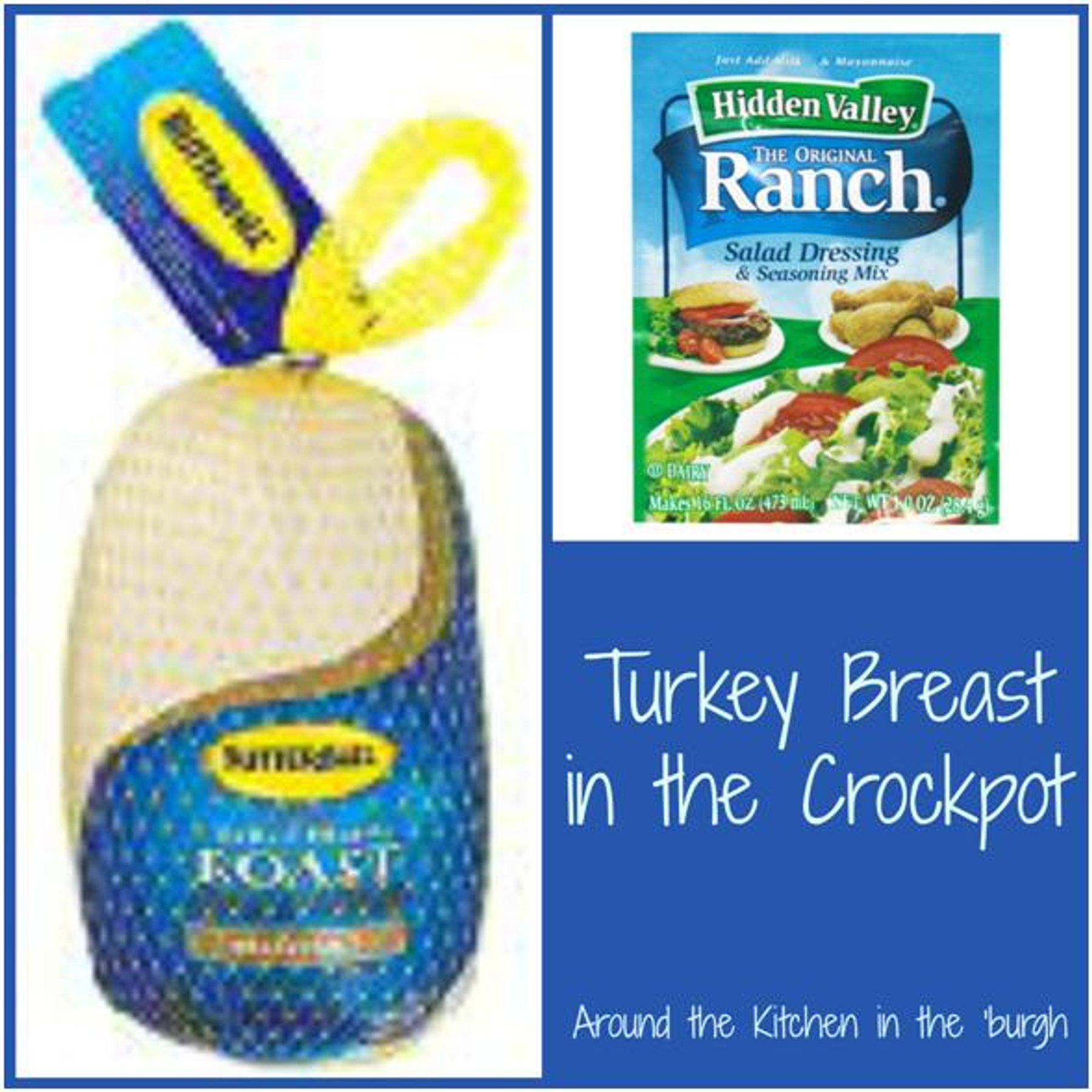 Place frozen turkey breast in crock pot (Becareful of the gravy packet that is frozen to the side of the turkey. I rinse it in cold water until the gravy packet releases from the turkey).