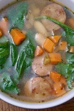 Crock Pot Sausage, Spinach and White Bean Soup