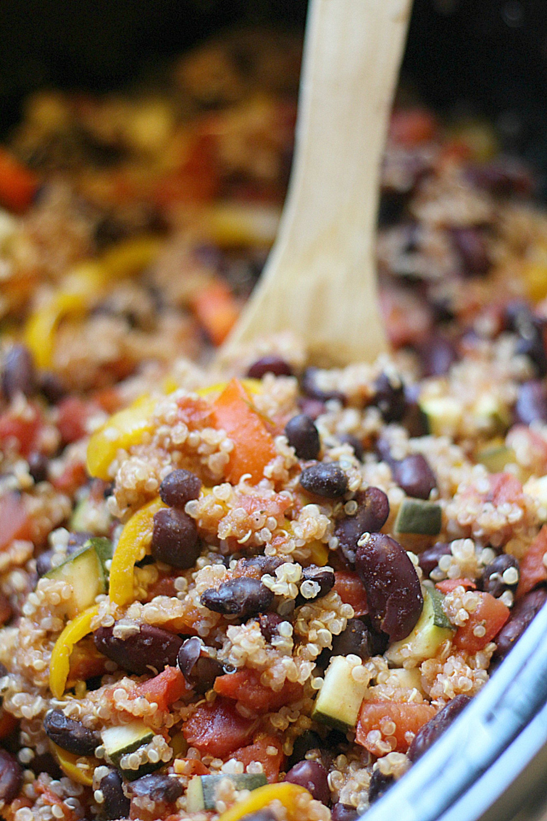 CROCKPOT TEX MEX QUINOA RECIPE APRIL 12, 2016 One pan mexican quinoa recipe that takes only minutes to put together. Hearty flavors of quinoa, black beans and vegetables embodied with tex mex spices that simmer all day in the crock pot are ready to enjoy in the evening. A stress-free dinner waiting to be devoured!