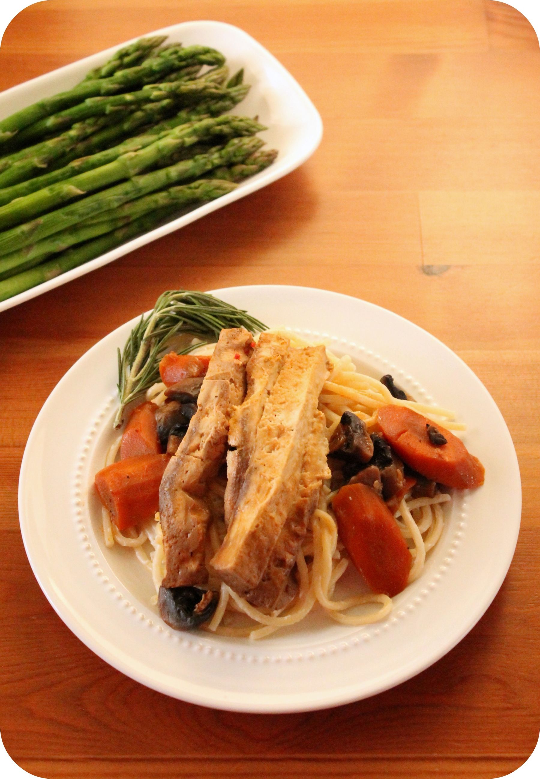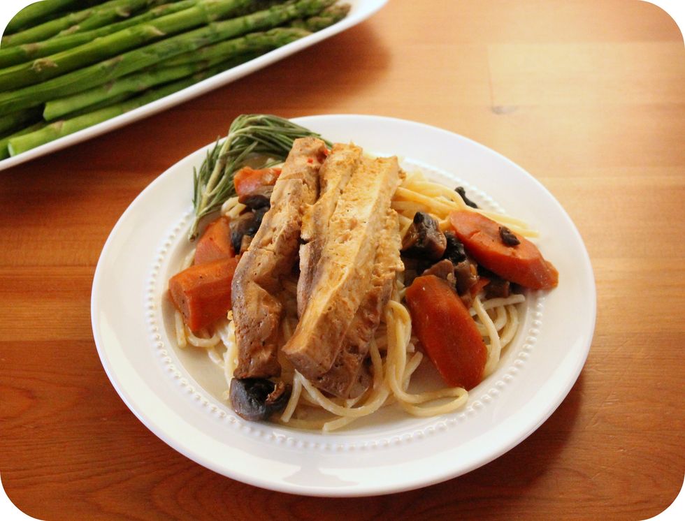 A simple, flavorful slow cooker meal made with tofu, mushrooms, and carrots. It's quick to put together, and paired with pasta or rice and a green veggie makes for a great weeknight supper!
