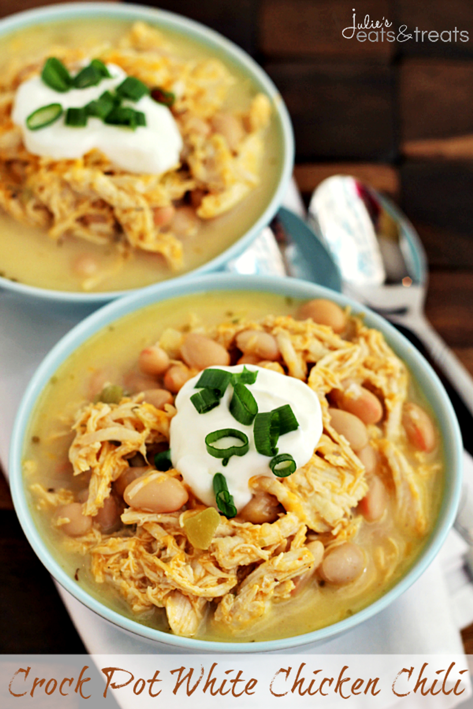 Crock Pot White Chicken Chili ~ Loaded with White Beans, Cheese, Cayenne Pepper and Green Chilies to give it a KICK!