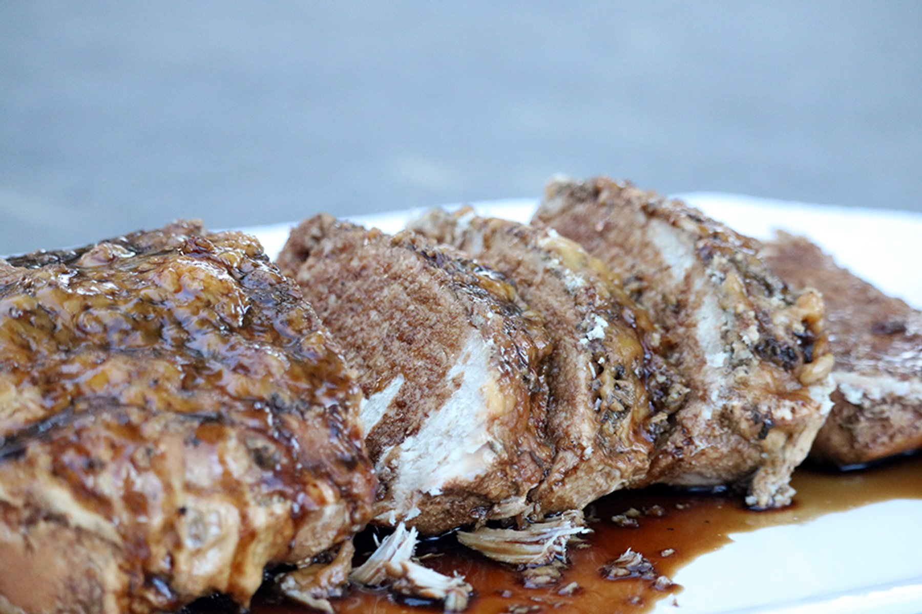 Crockpot Balsamic Pork Tenderloin – a slow cooked perfectly seasoned pork tenderloin served with a simple and sweet balsamic sauce.