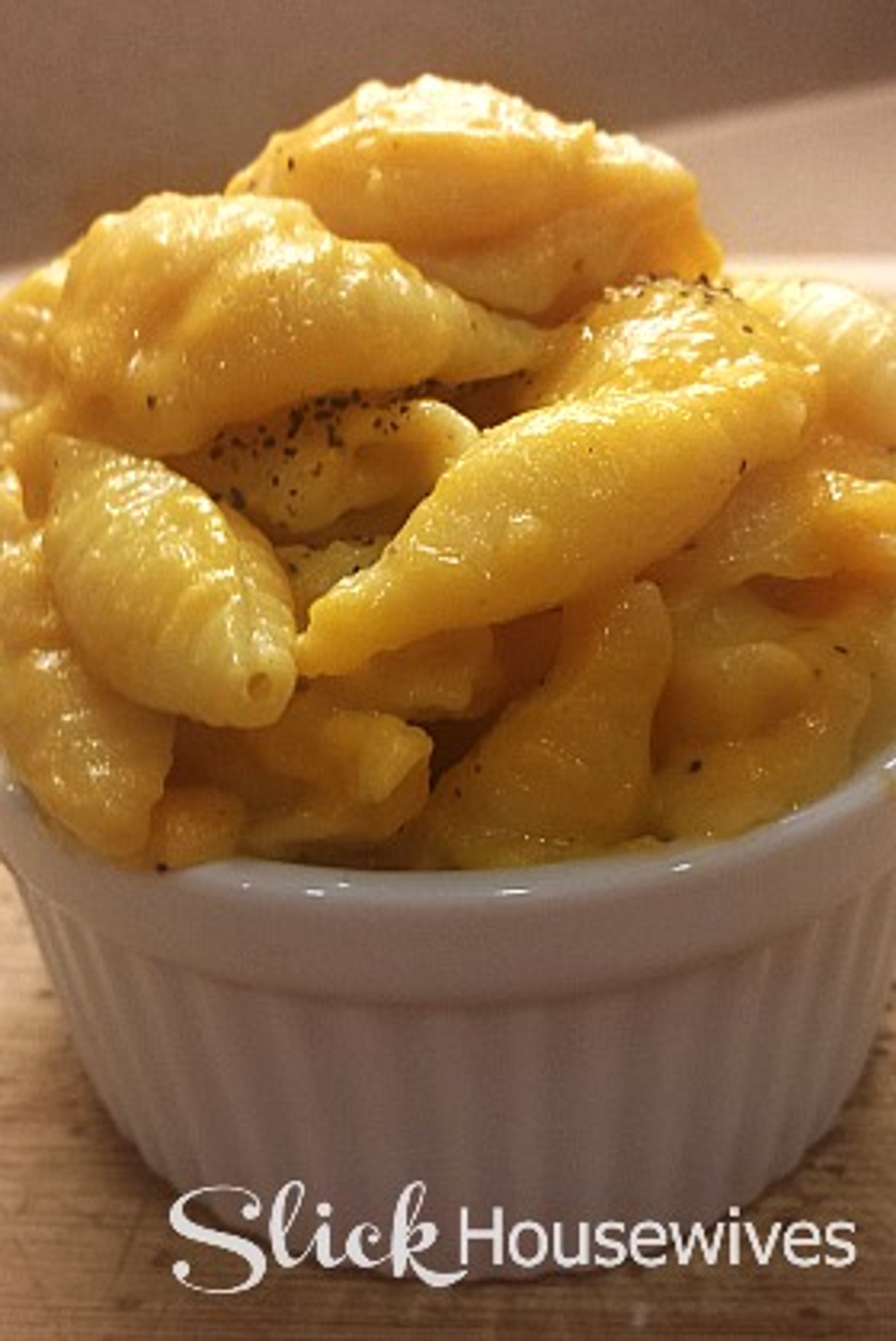 Boil the macaroni in water for six minutes and drain{all dente}. In a medium saucepan, mix butter and cheese. Heat over medium high heat and stir until the cheese melts. Spray your slow cooker with...