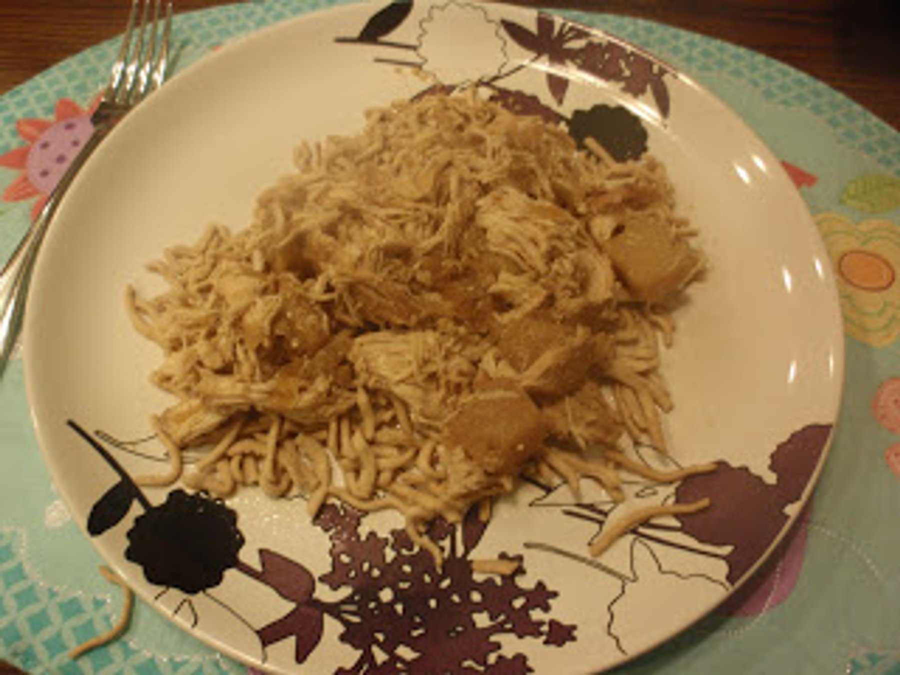 Finely chop the onion and place it in the crock pot. Place the chicken on top of the onion. Dump the pineapple juice included, over the top of the chicken. Mix up the chicken broth and the soy sauce and...