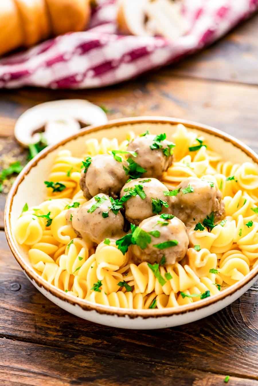 Crockpot Swedish Meatballs is a quick and easy dinner recipe that the entire family will love! It uses frozen meatballs to make it quick and easy. A quick gravy of cream of mushroom soup, beef broth and brown gravy mix gives it tons of flavor. Serve it over a bed of egg noodles and pair it with steamed vegetables or homemade roasted vegetables!