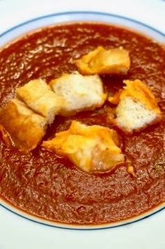 Crockpot Tomato Basil Soup with Cheesy Croutons