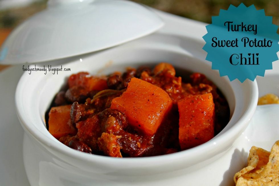 I used lean ground turkey, so I don't have to feel too badly about myself after I scarf down a enormous bowl (or two, or...). In fact, since I've added the sweet potatoes, I'm feeling downright delighted with myself. I didn't even top this chili with cheese, which is pretty much unheard of, right? It's that good, no cheese required, but by all means, add the cheese if you must. I did, however, serve it with a big ole bowl of tortilla chips, but they were multigrain, s