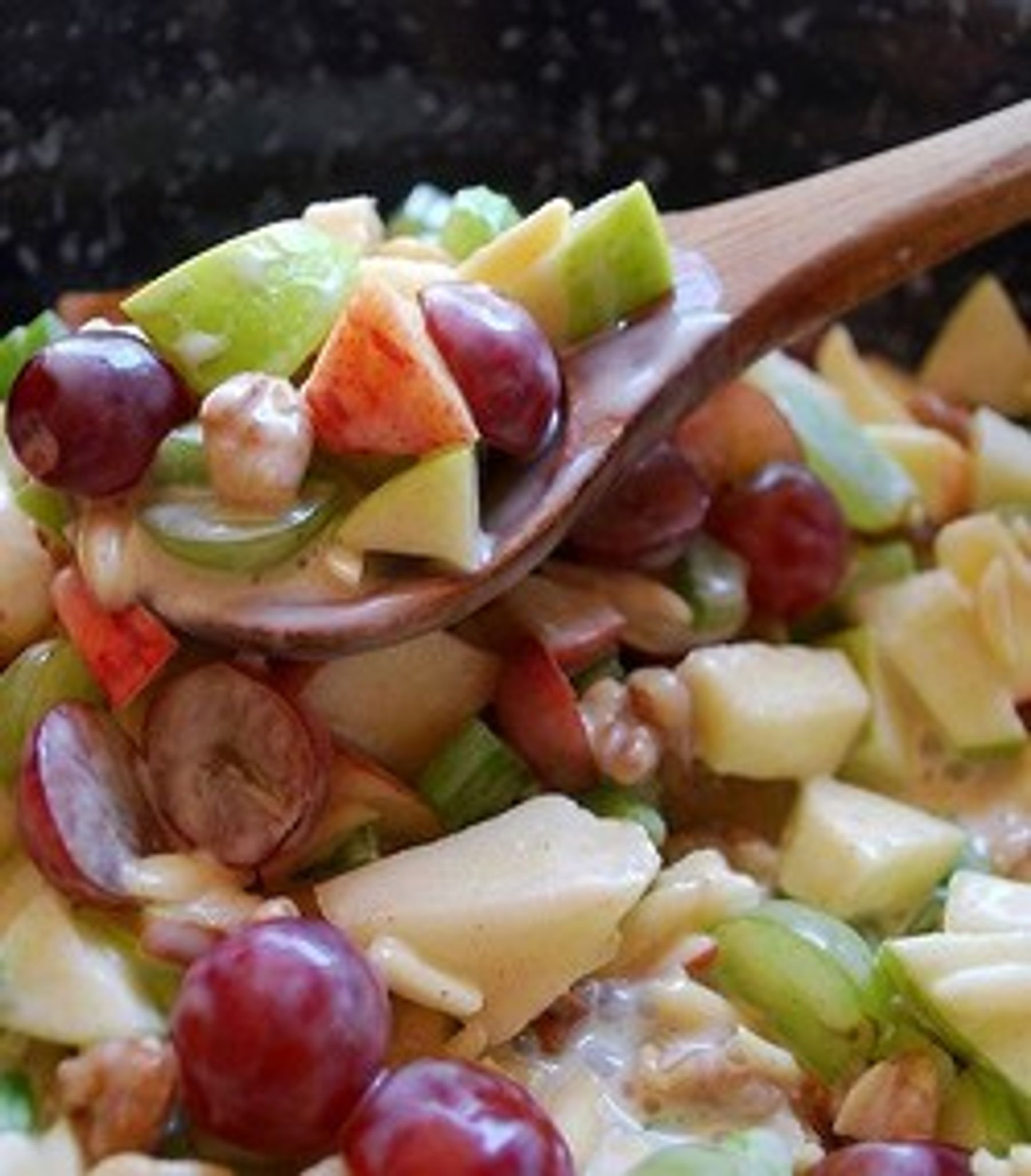 Apples & grapes teamed up with crunchy almonds and walnuts, mixed with a cinnamon-yogurt sauce. This is one great salad!