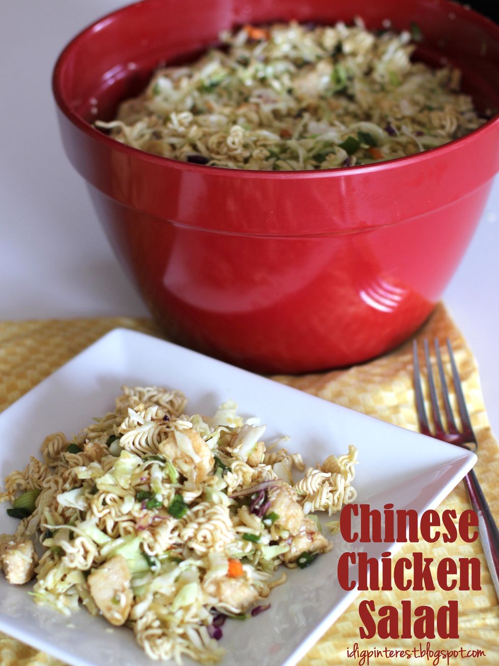 Stir all sauce ingredients together and chill. In a large bowl, add shredded cabbage or coleslaw, green onions, slivered almonds and sesame seeds. Add 3/4 c. chicken, cooked and cubed, to cabbage mixture....