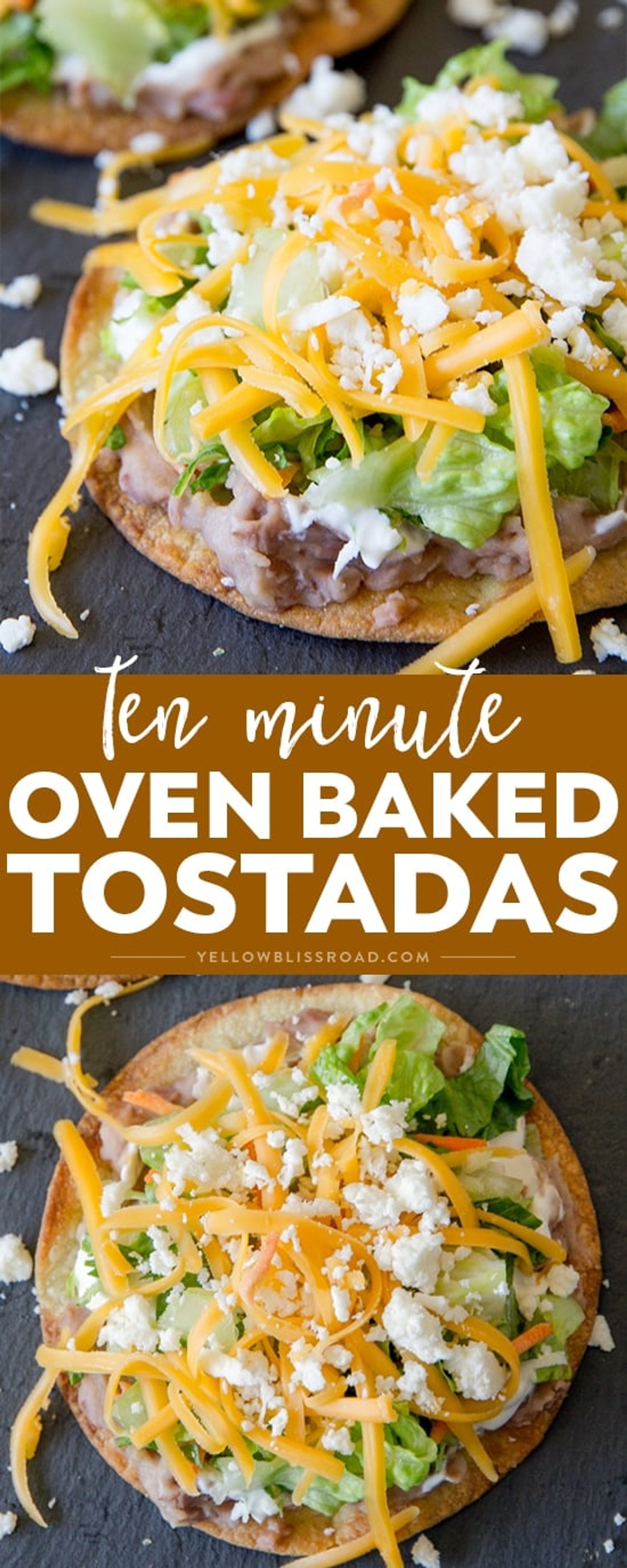 Crunchy 10 Minute Oven Baked Tostadas take minutes to make and are better for you than frying. Easy meal any night of the week and perfect for Cinco de Mayo!
