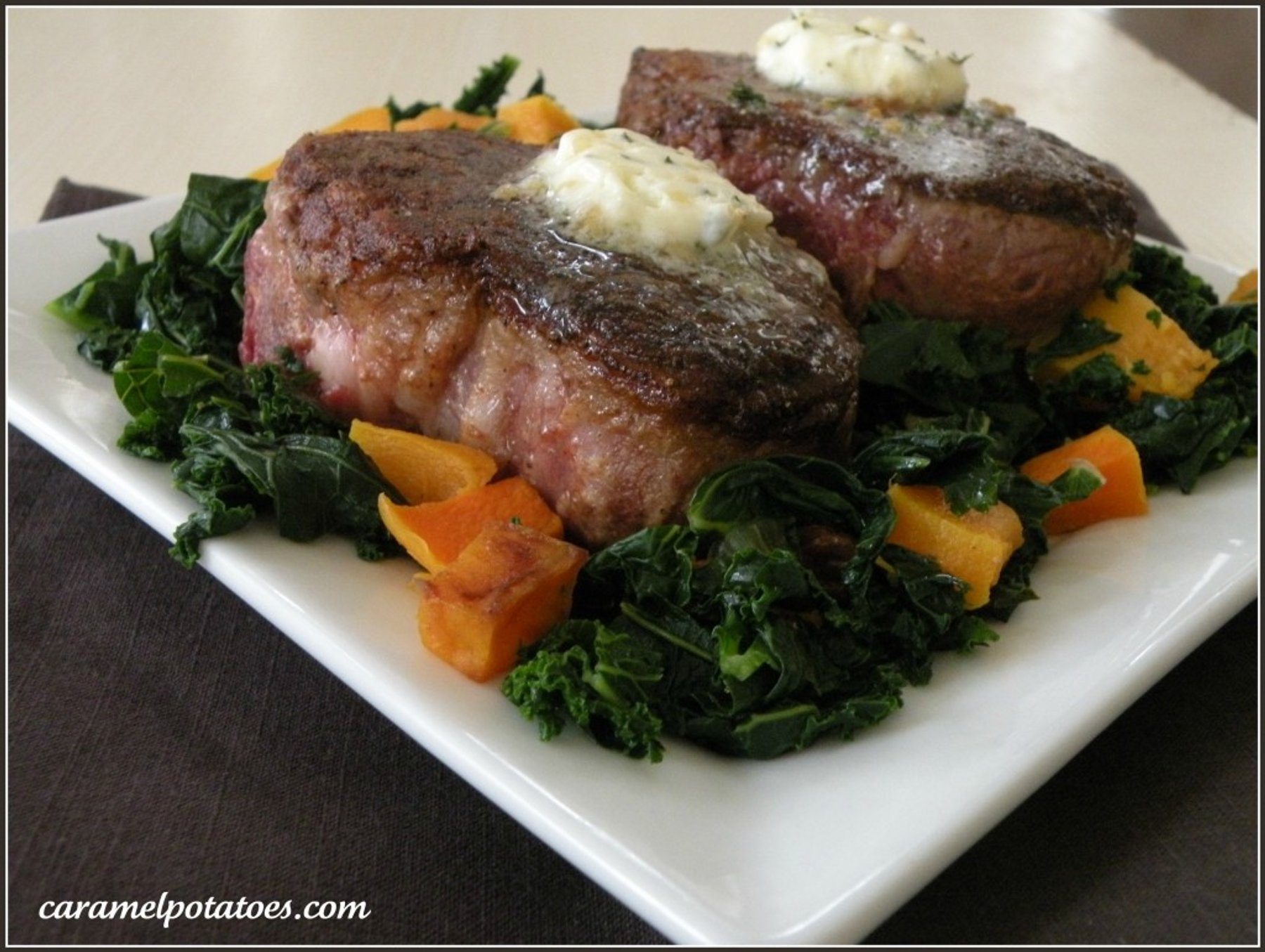 Crusted Beef Tenderloin Steaks with Garlic-Herb Butter