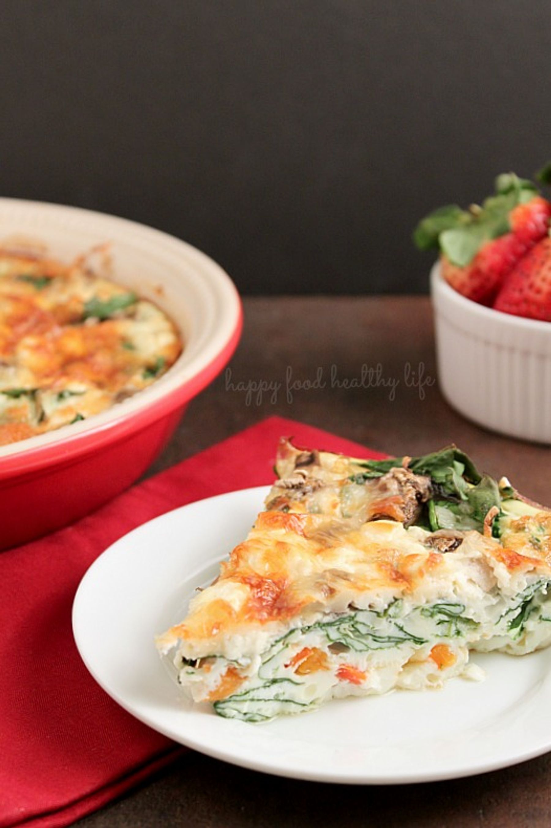 Layer the pan with spinach, peppers, mushrooms, and feta. Pour the entire package of AllWhites 100% Liquid Egg Whites over the...