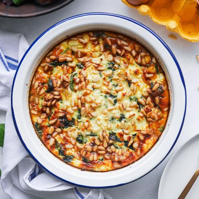 Crustless Quiche with Spinach & Feta elizabethchloeMarch 08, 2021 58 This spinach and feta quiche is flavoured with onion, garlic, lemon and nutmeg, and is also topped with pine nuts for extra crunch!6Try itSee the full directions on my site