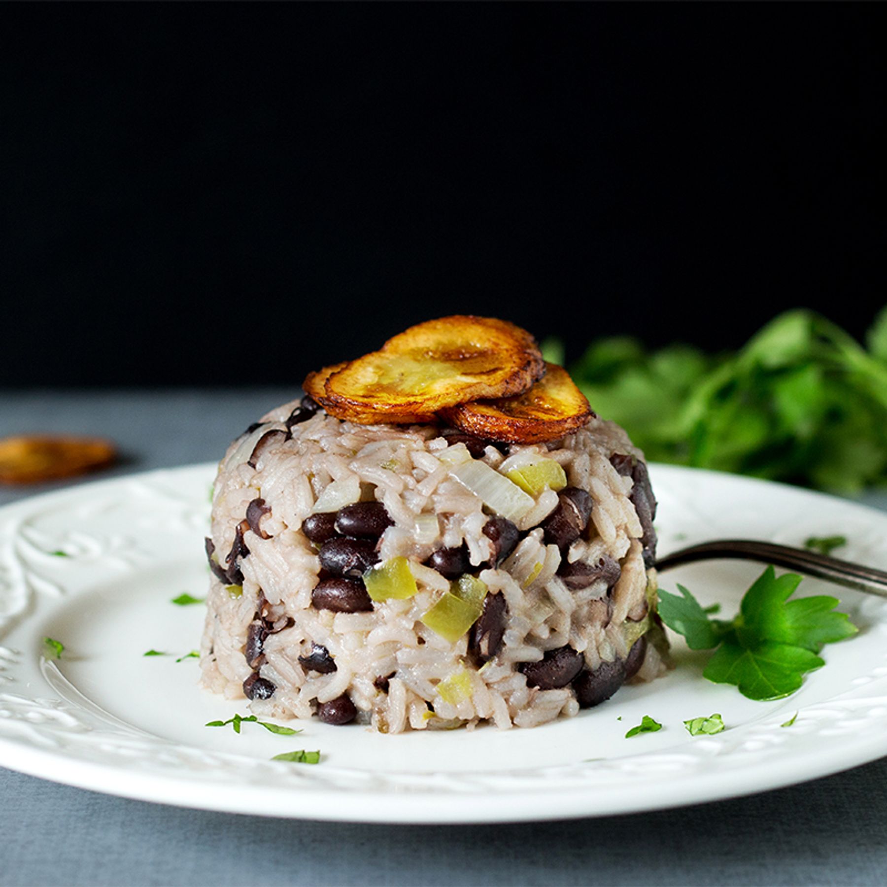 Classic Cuban black beans and rice dish called Moros Y Cristianos in Spanish. A perfect side dish!