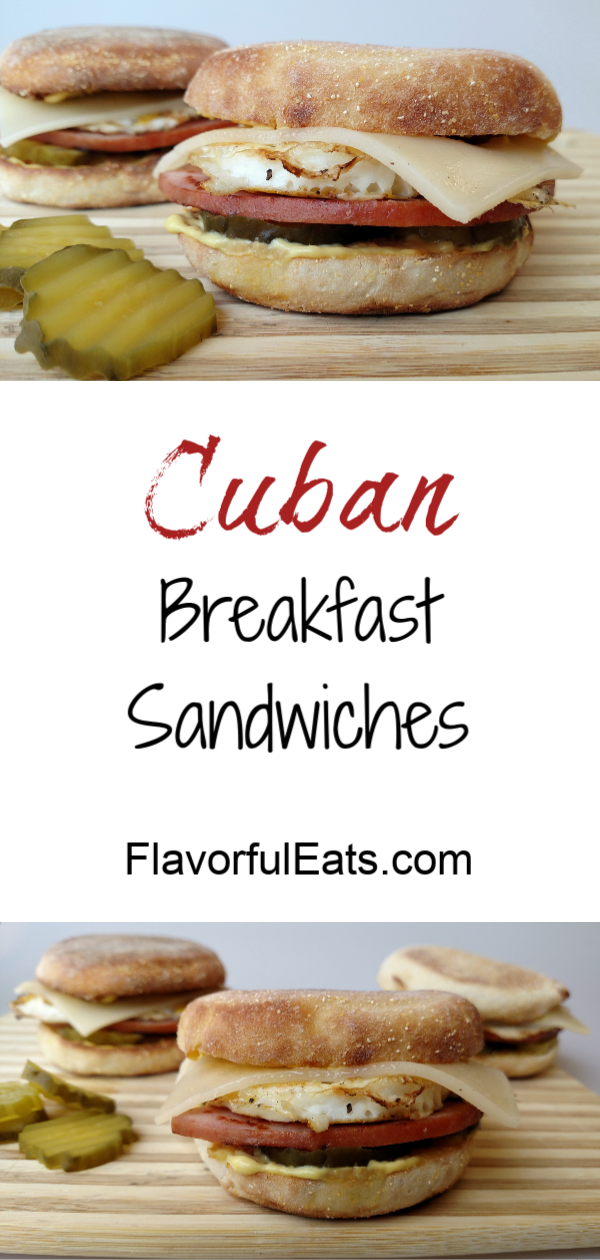 Create a breakfast masterpiece with Cuban Breakfast Sandwiches. These sandwiches turn the traditional Cuban ham & cheese sandwich into a perfect breakfast sandwich with ham, Swiss cheese, and pickles with a fried egg on a crispy English muffin.