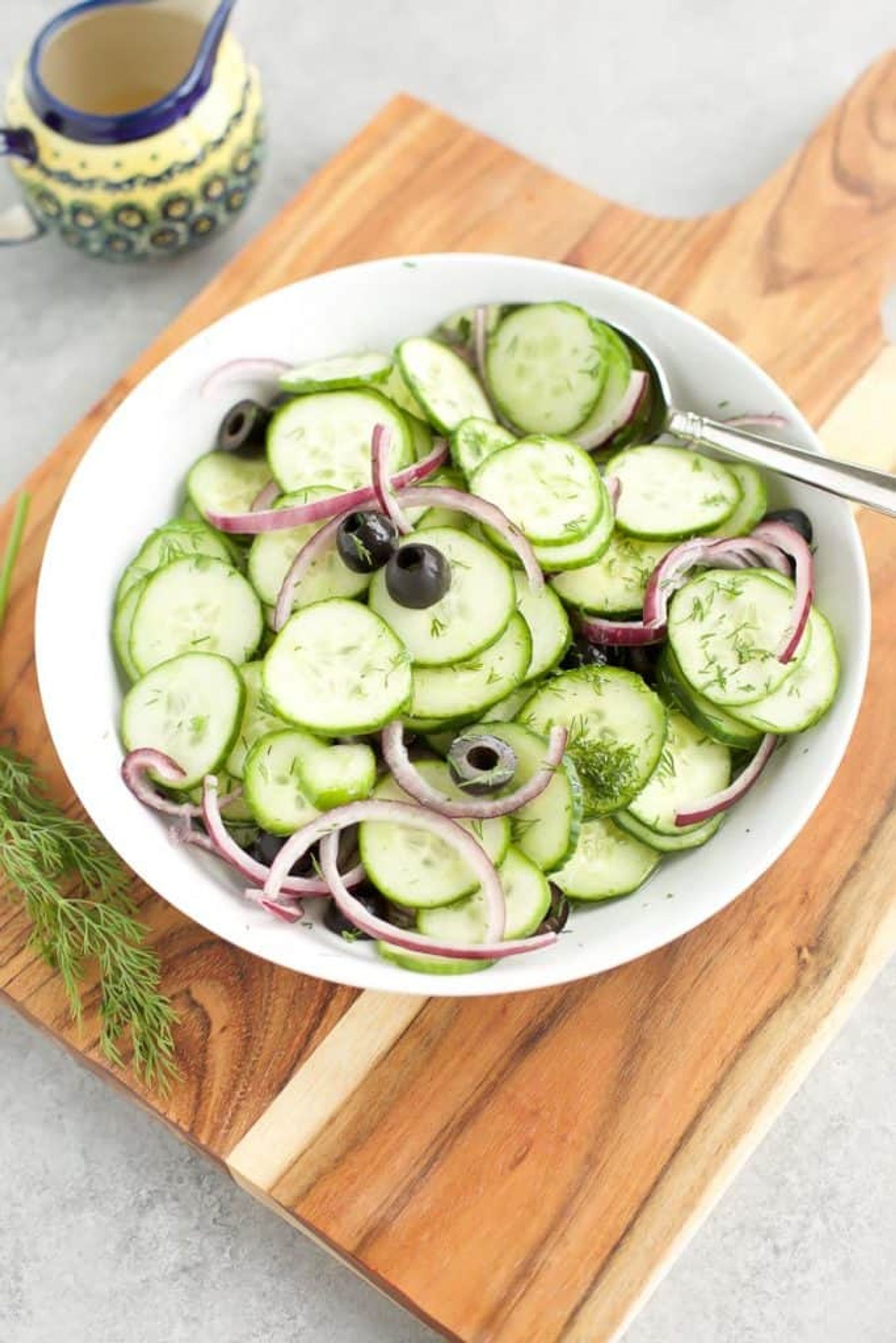Summer in a bowl! This Cucumber Salad {Keto} is light, refreshing and so EASY to make. It's perfect for meal prep, picnics, cookouts and potlucks.
