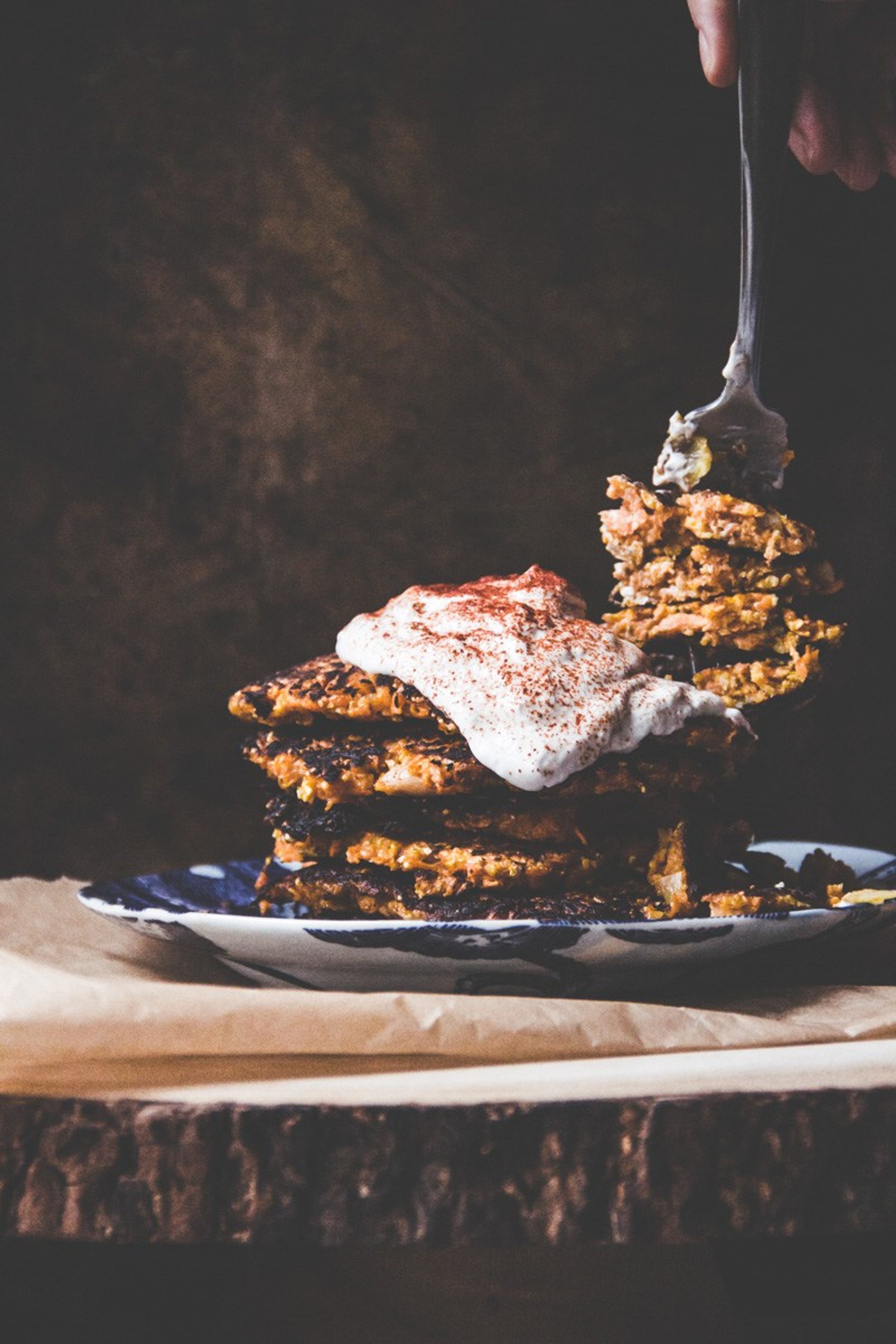 Cumin Sweet Potato Cornmeal Pancakes - savory pancakes with a hint of warm spice!