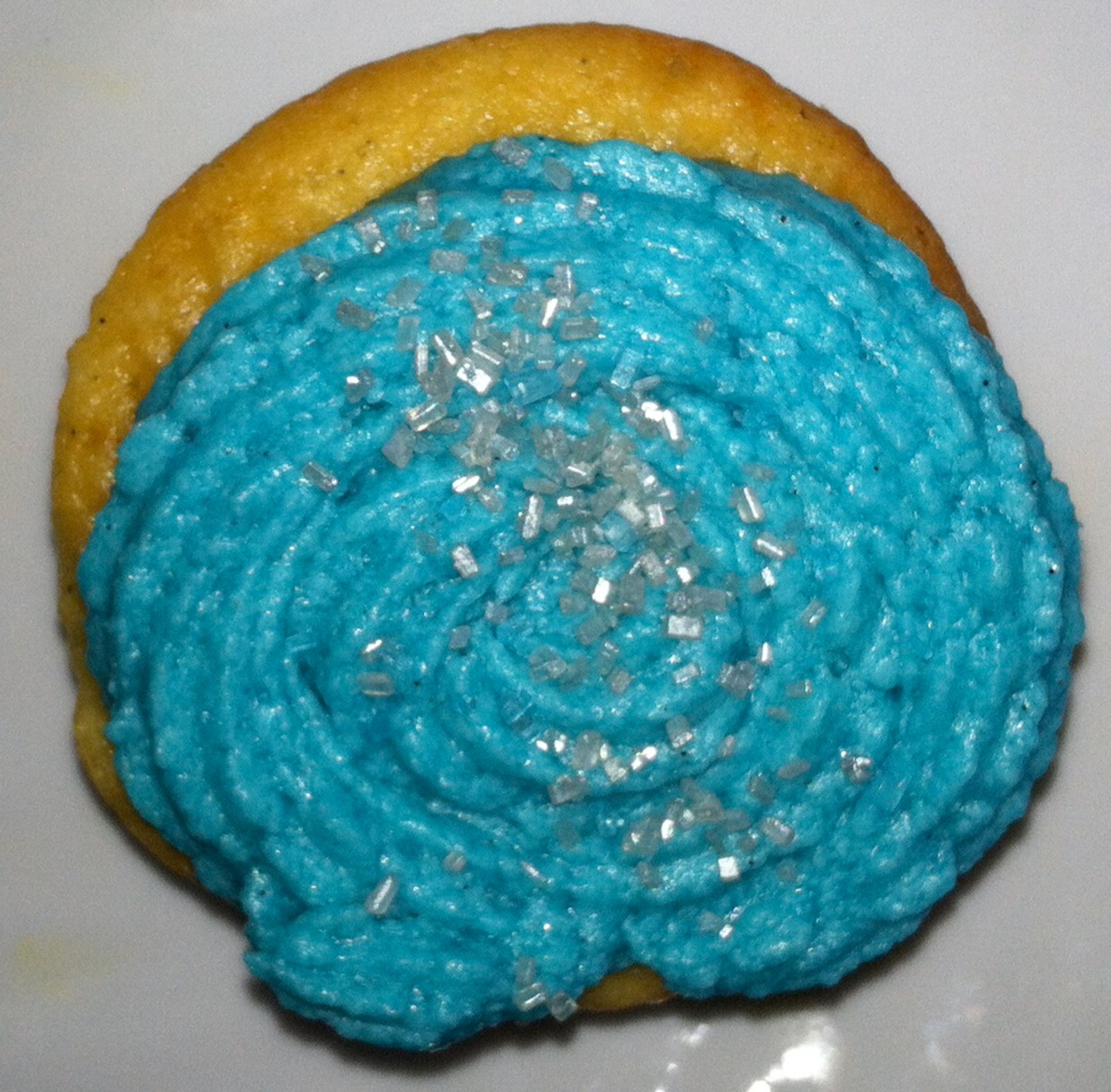 6. Tip for frosting: If you do not have a decorating bag, take a large zip-lock bag and cut a small hole in the tip of the corner. Push desired frosting tip through and fill the bag with frosting! You can also simply make the hole you cut larger and frost using it without a tip, the frosting may just come out thicker.