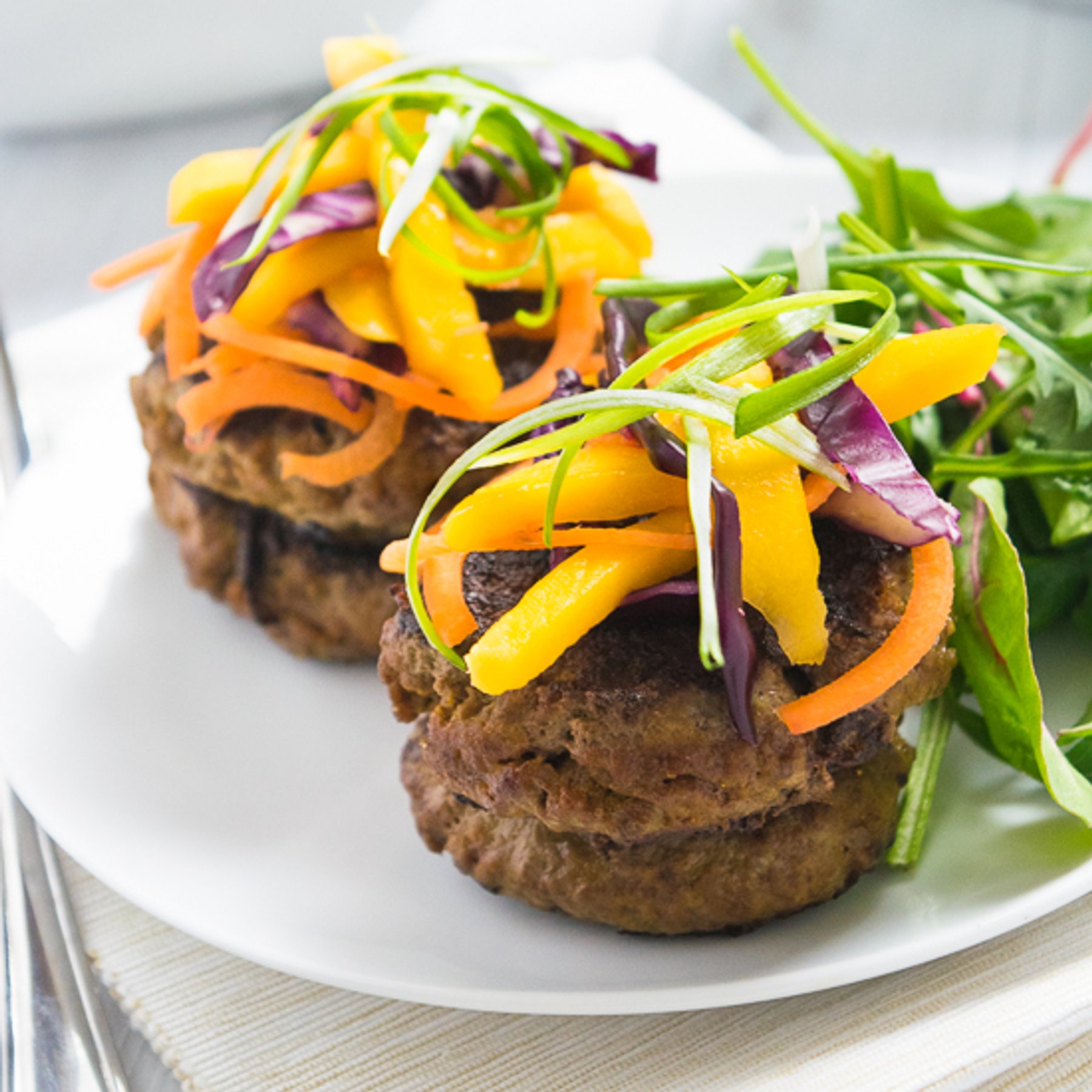 Curried Beef Burgers & Mango Slaw