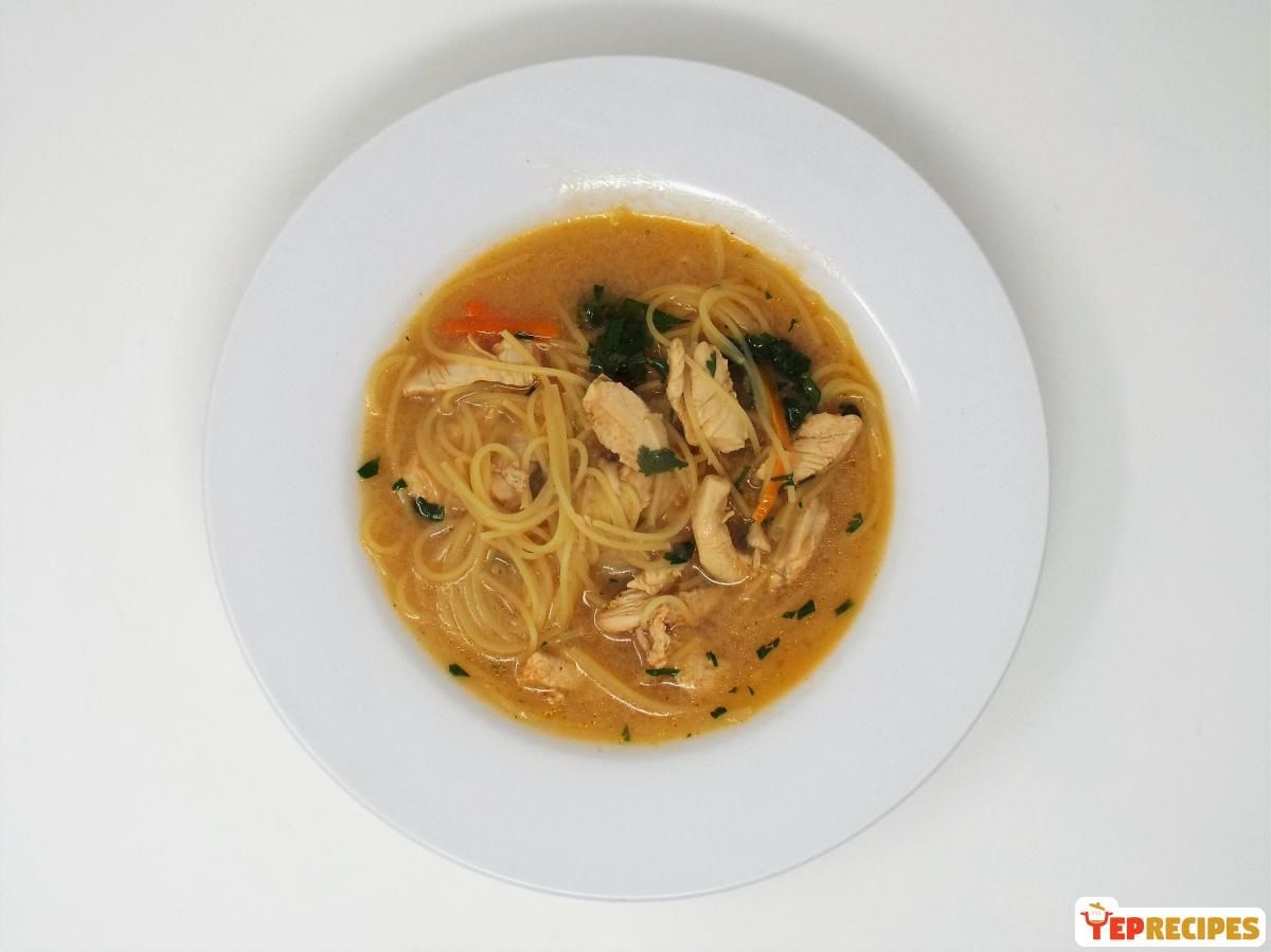 A spicy Thai style chicken noodle soup made with a homemade red curry paste.