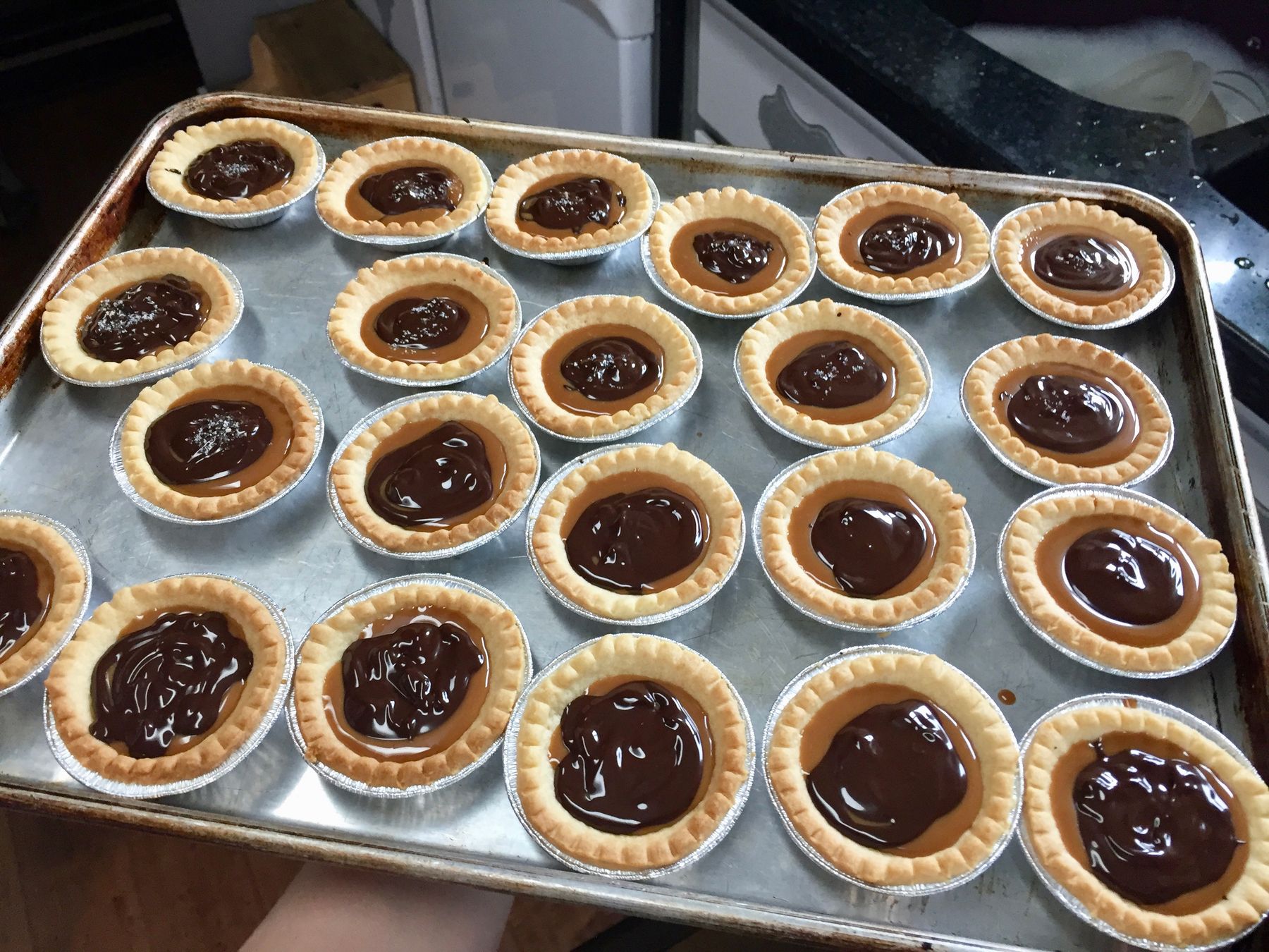 Dark Chocolate Caramel Tarts with Bacon Sea Salt