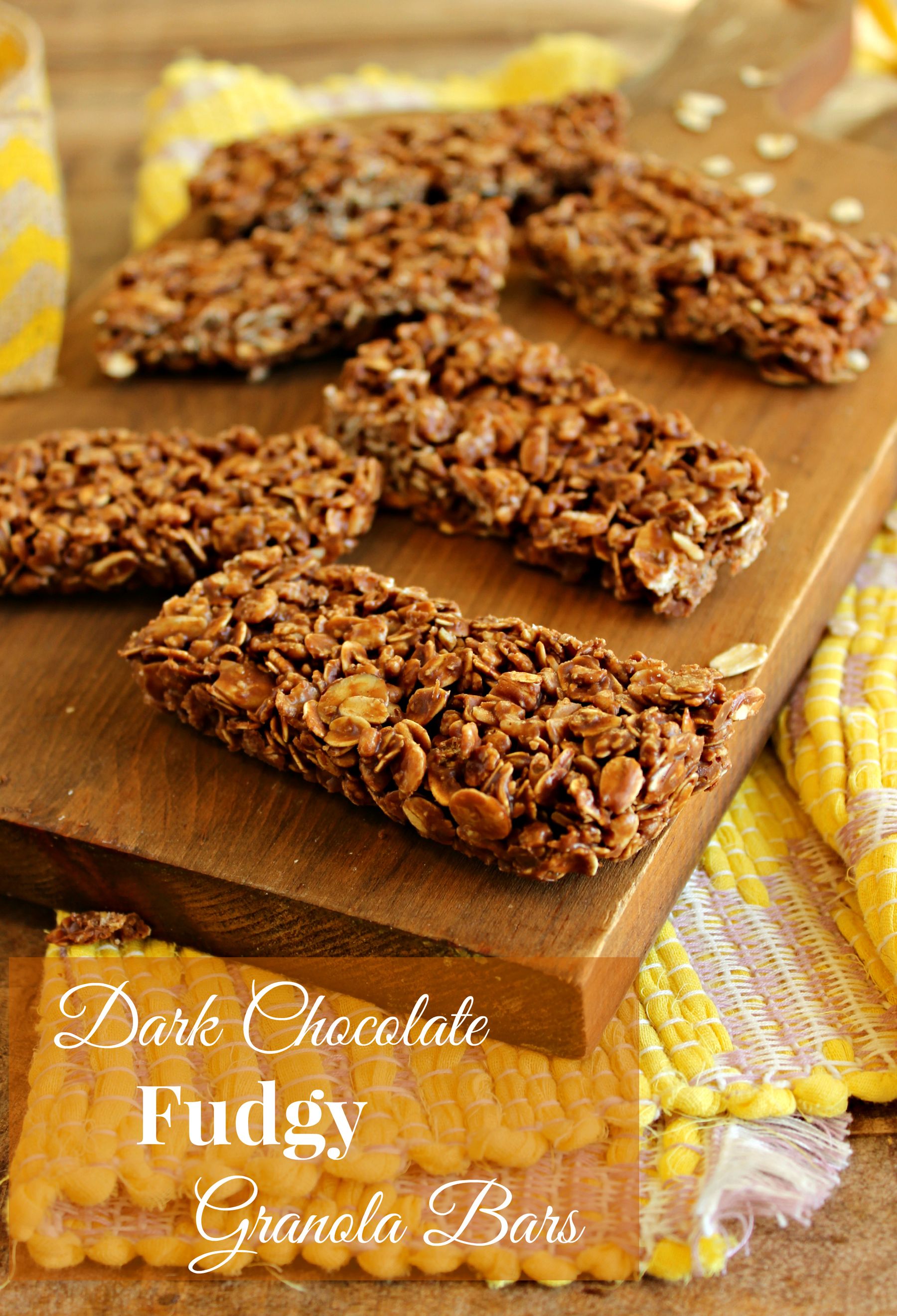 A decadent fudgy dark chocolate with peanut butter granola bar. These bars are no-bake, easy, and healthy