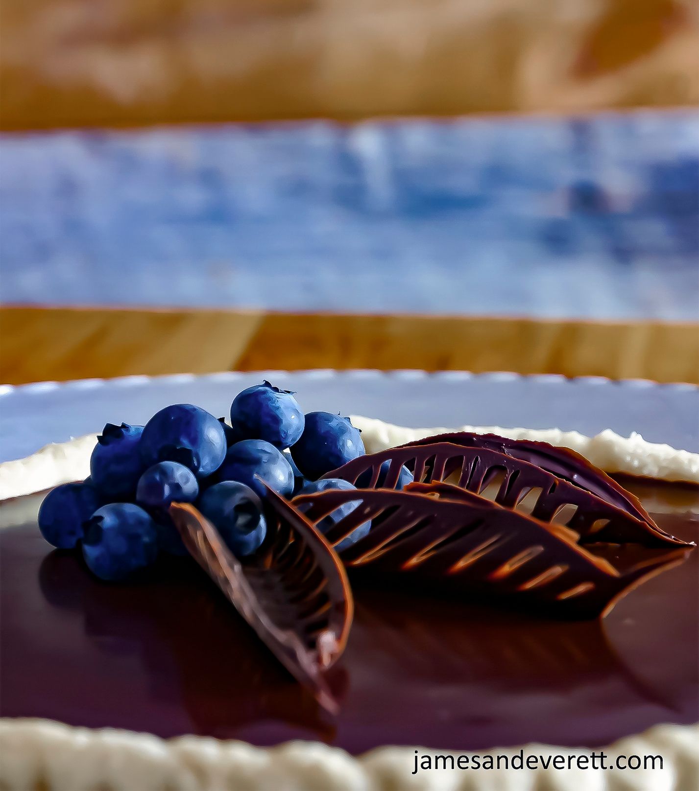 Velvety smooth and rich dark chocolate fills a golden flaky pasty crust in this stunning and decadent dessert. Topped with delicate leaves of chocolate and fresh blueberries, this one is a chocoholics dream come true.