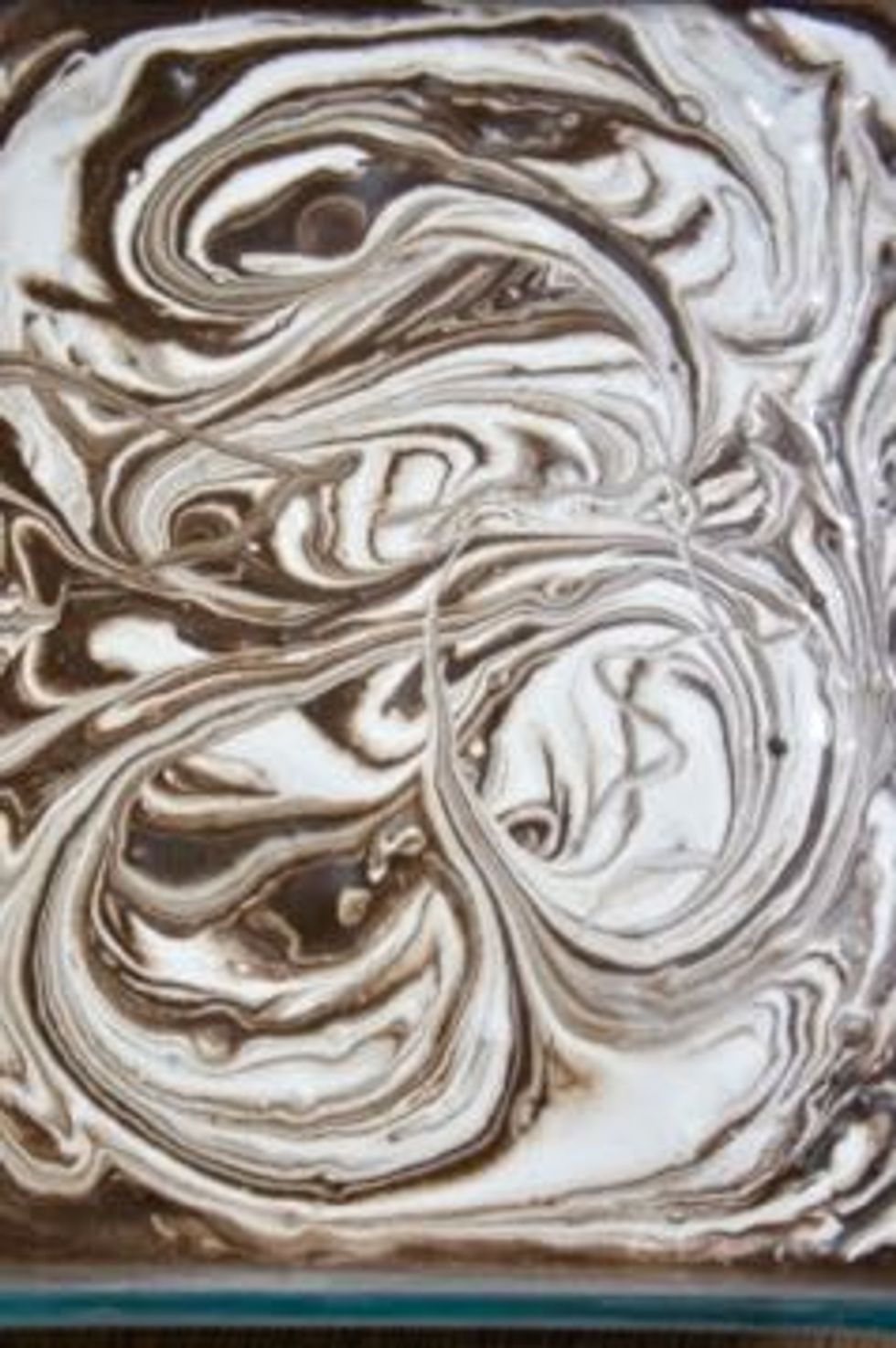 Homemade dark chocolate ice cream with marshmallow swirl.