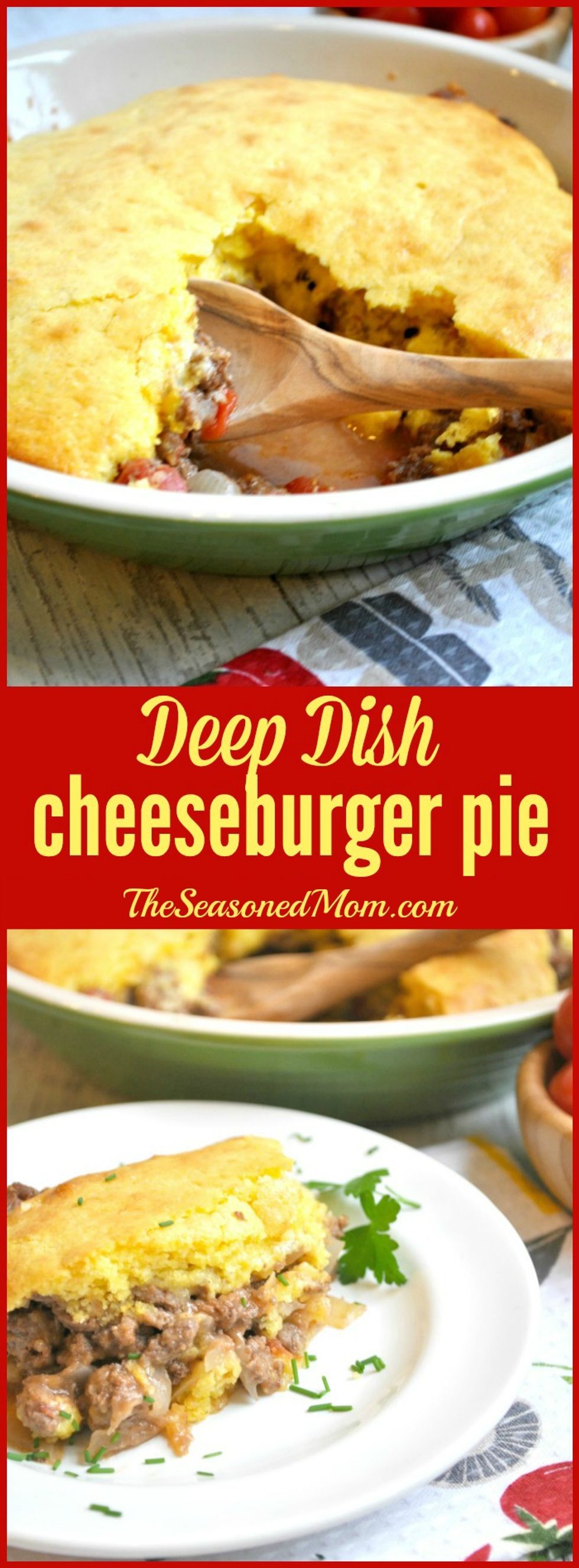 All of the flavors of your favorite burger come together in one easy and convenient casserole! This Deep Dish Cheeseburger Pie is an easy weeknight meal that your family will devour!