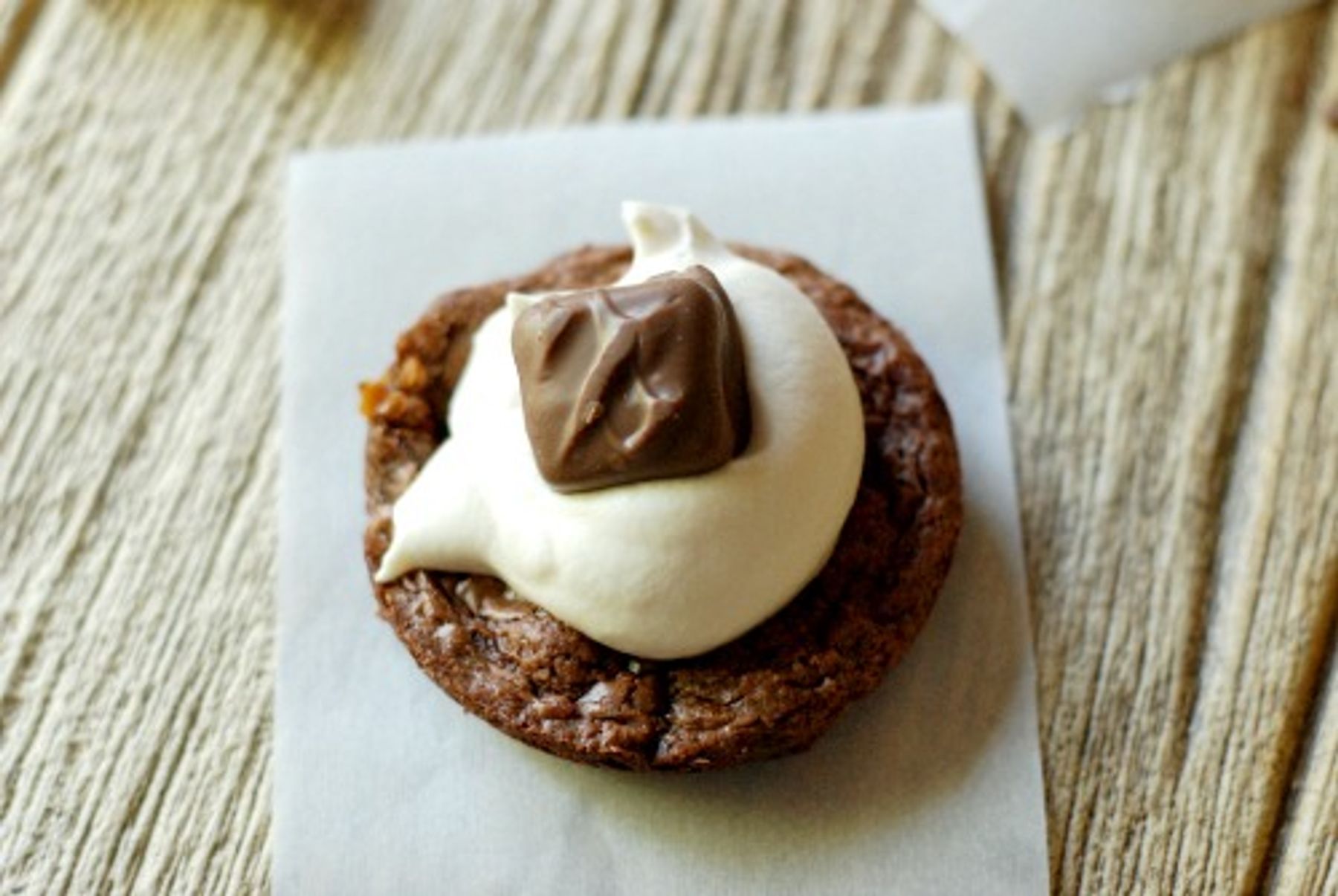 Deep Dish Milky Way Cookies with Caramel Whipped Cream