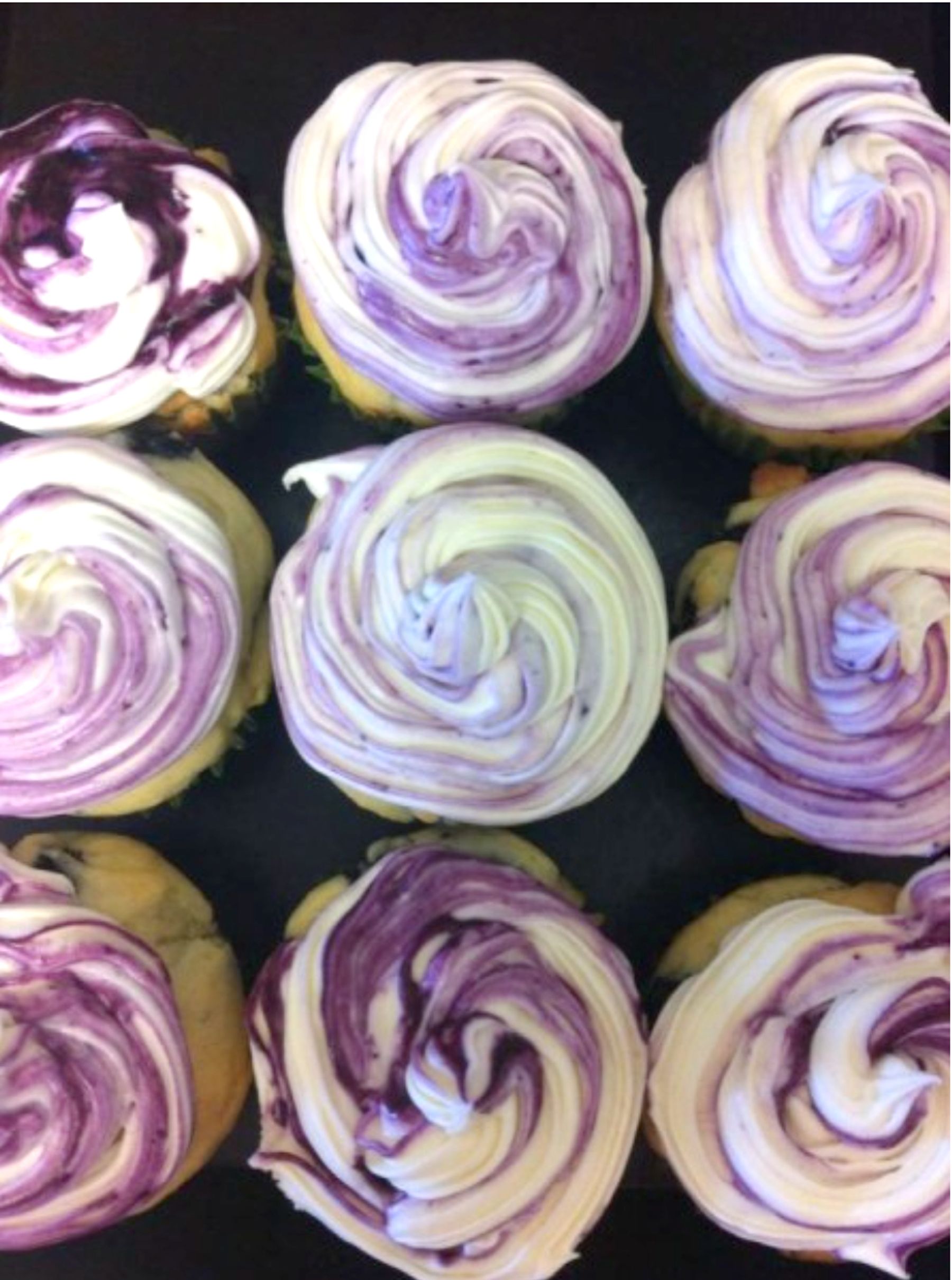 Delicious Blueberry Cupcakes with Blueberry Icing and Cream Cheese Filling