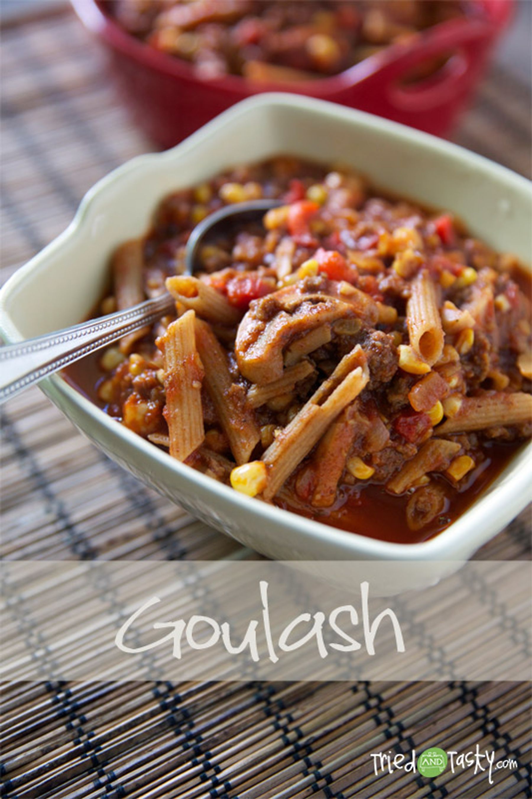 This Goulash is an 'everything-but-the-kitchen-sink' kind of meal and it's delicious! Most all the ingredients are pantry staples and you've probably got them on hand!