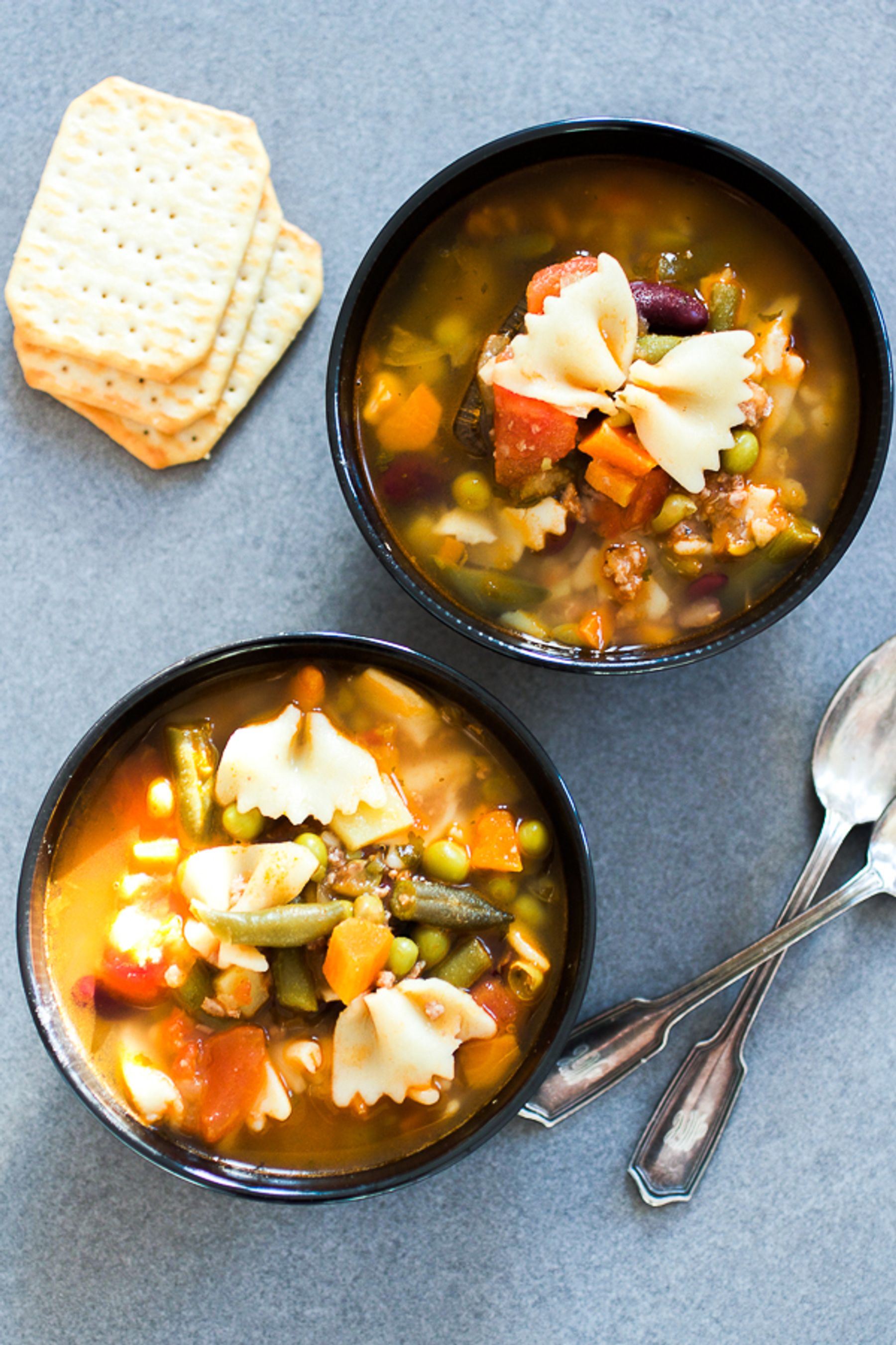 Minestrone soup: thick, warm, comforting and overflowing with vegetables.