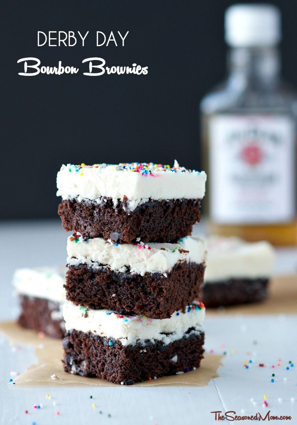 A few simple additions to a boxed brownie mix create the most decadent, festive, and EASY Derby Day Bourbon Brownies! The moist, rich brownies are spiked with Kentucky bourbon whiskey and then topped with a creamy layer of bourbon frosting for a perfectly boozy party dessert!