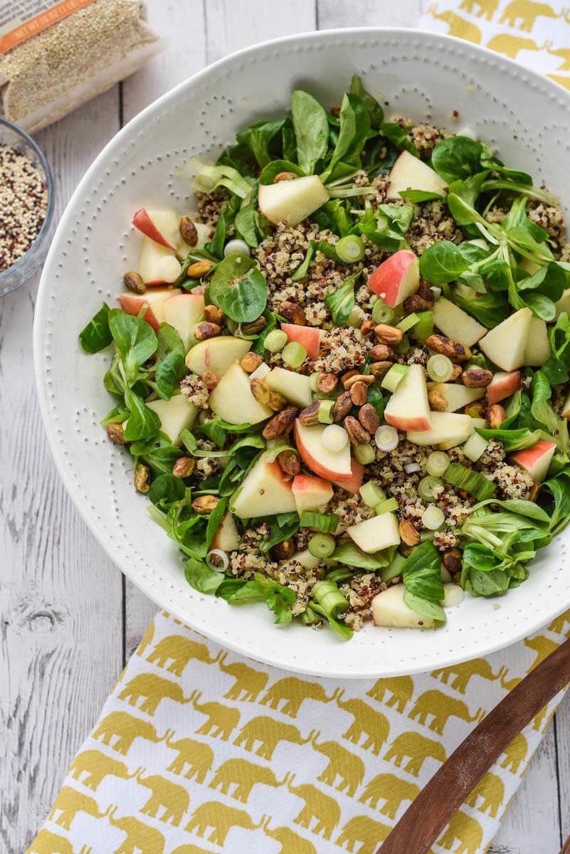 Need help staying on the right track? Make this Detox Quinoa Salad with Turmeric Tahini and eating healthy will be easy. Filled with seasonal greens and topped with a delicious creamy tahini dressing. Clean eating at its best! {gluten free, whole30, paleo, vegan}