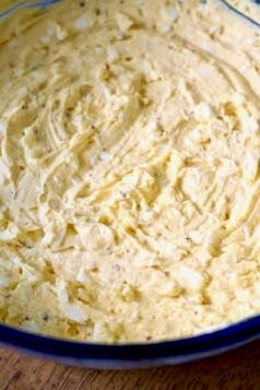Peel the hard boiled eggs and place the yolks in a food processor.