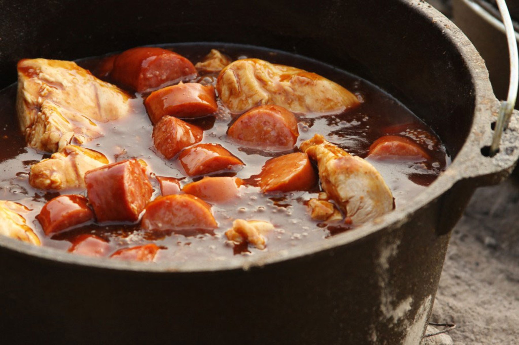 Add the chicken (and optional pork) to the hot Dutch oven. Place the lid over the top and check occasionally. When the chicken is white and cooked through (DO NOT OVERCOOK), drain ALL the water from the...