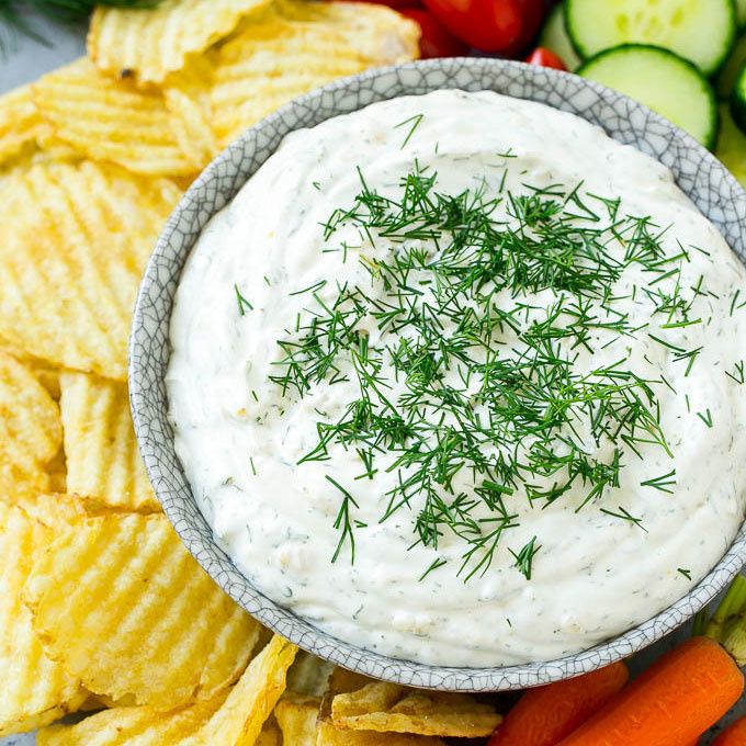 Dill dip is a creamy herb flavored snack that pairs perfectly with potato chips and vegetables. Best of all, it's ready in just 5 minutes!