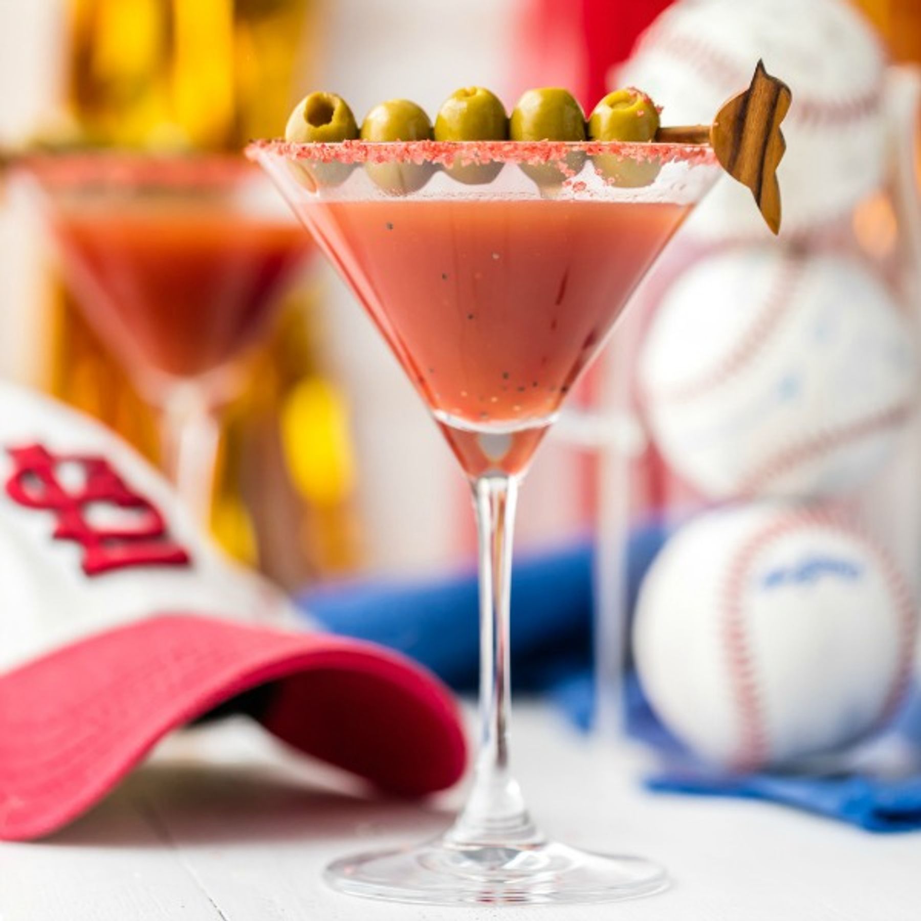 Cheer on the Cardinals with this Dirty Redbird Martini! Half Bloody Mary and half Dirty Martini, the perfect tailgating drink for any time of day!