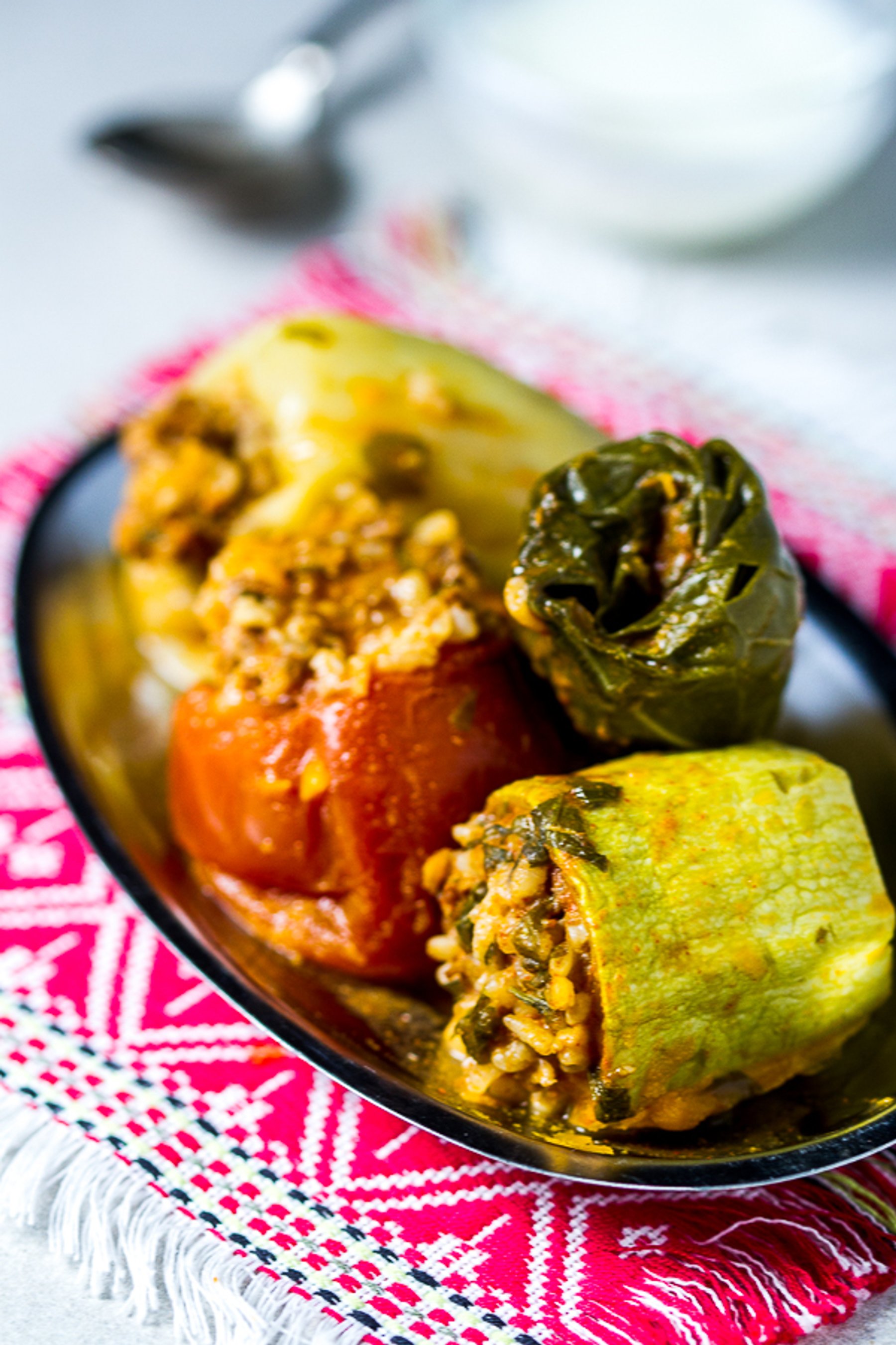 Dolmas, or stuffed vegetables, is maybe the most recognizable dish from the Balkans. Ground beef is mixed with onions, garlic plus spices, and used as a filling for several veggies (zucchini, onions, tomatoes, peppers and Swiss chard), until it’s all finally baked it in a tomato based sauce.