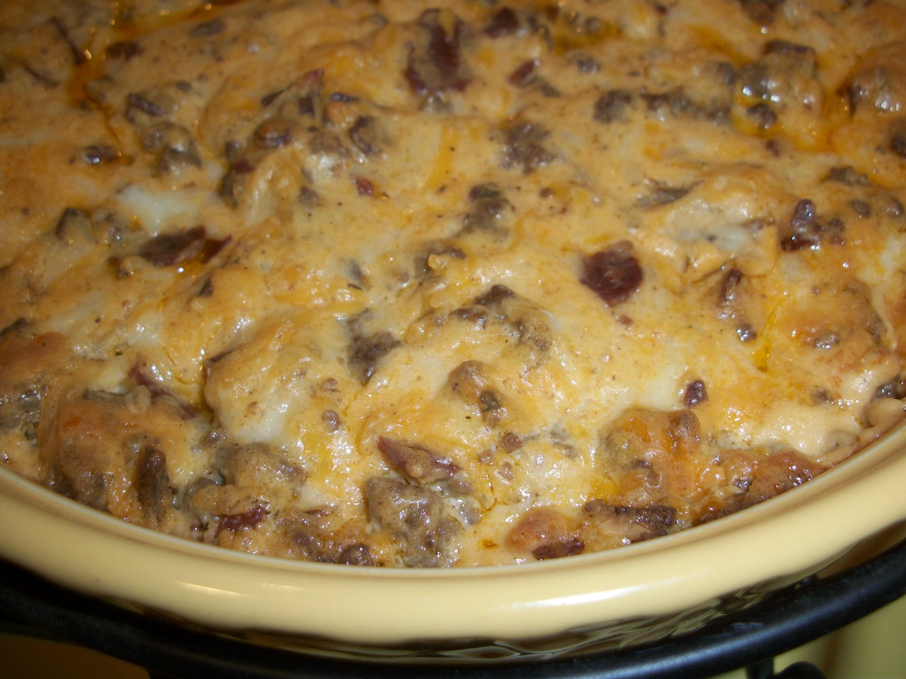 This dip is filled with all the flavors of a Double Bacon Cheeseburger. In fact you could even serve it on a bun!